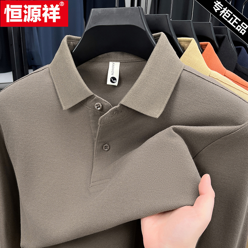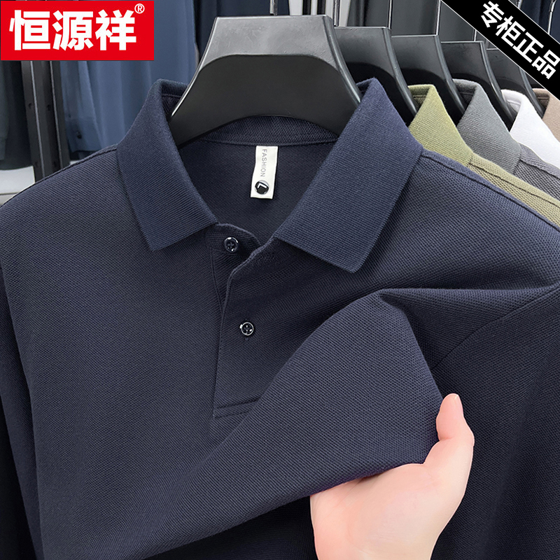 恒源祥高端纯棉长袖t恤男士商务休闲翻领打底polo衫宽松纯色上衣
