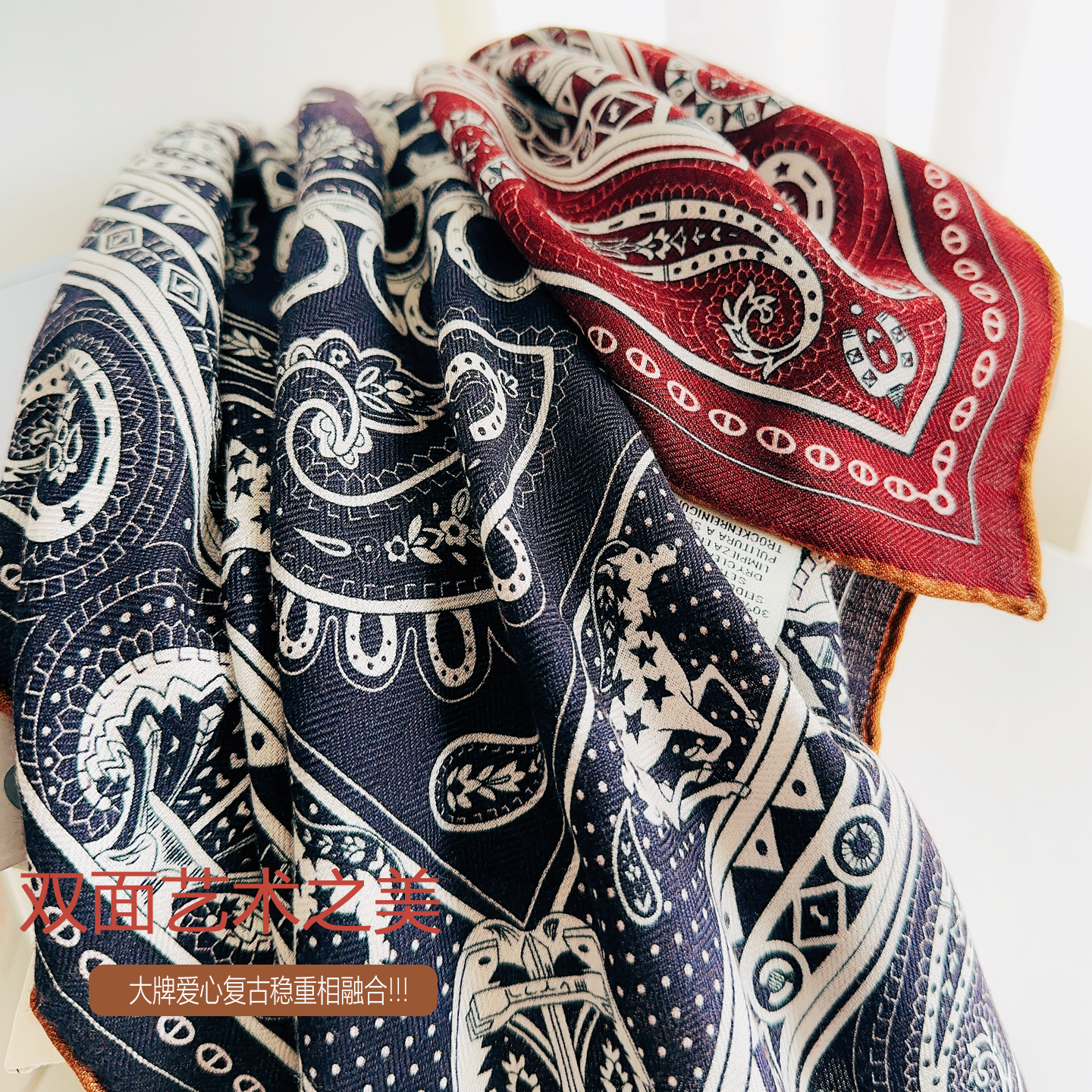【爱心腰果】65cm丝毛双面围巾披肩两用真丝羊毛复古方巾小领巾女