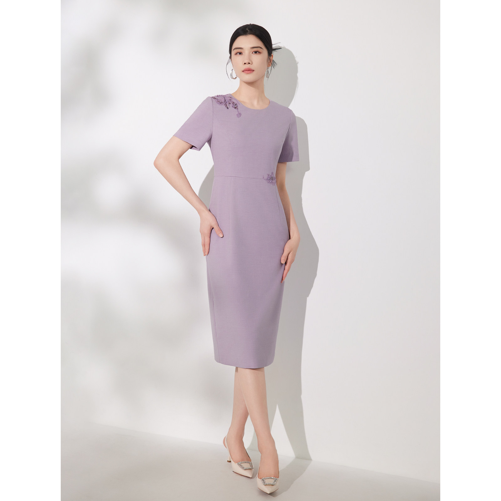BBLLUUEE粉蓝衣橱2025夏装新款气质优雅简约复古刺绣短袖连衣裙女