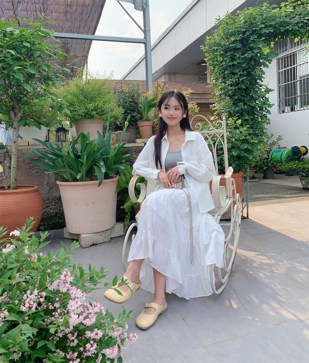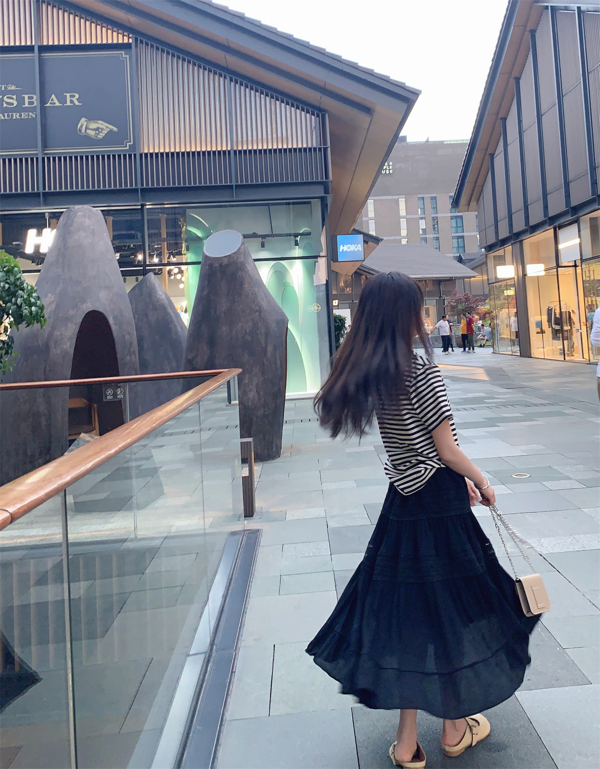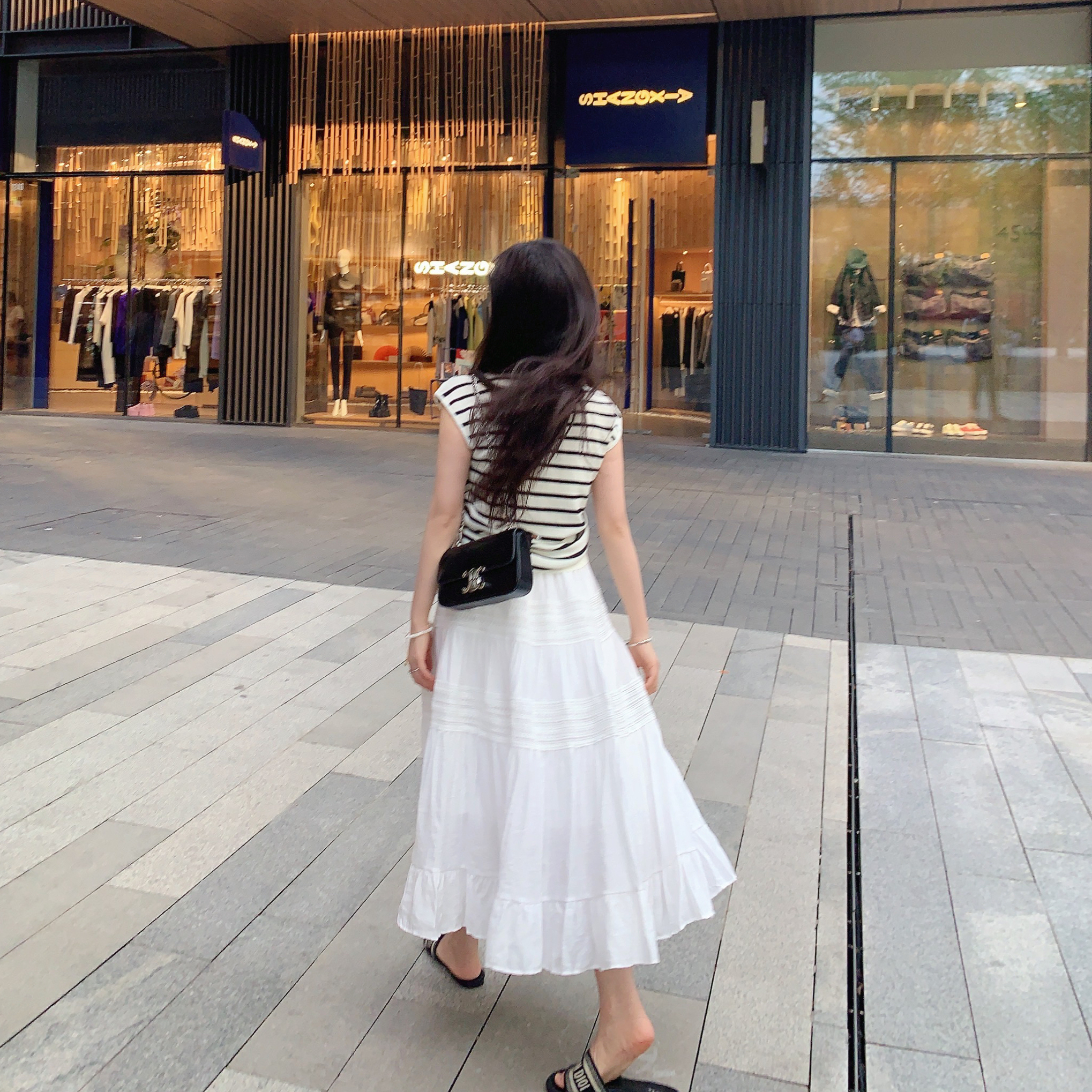 小小家 小个子小码精致镂空半身裙高腰甜美百搭A字松紧中长裙150