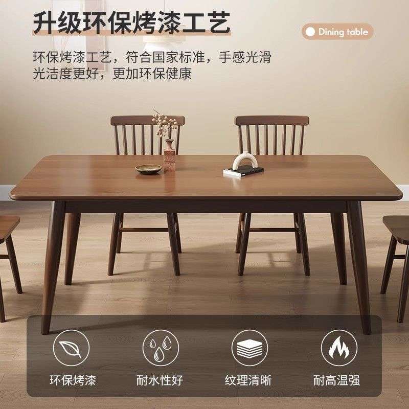 北欧全实木餐桌长方形橡木桌椅组合家用客厅小户型胡桃色吃饭桌子
