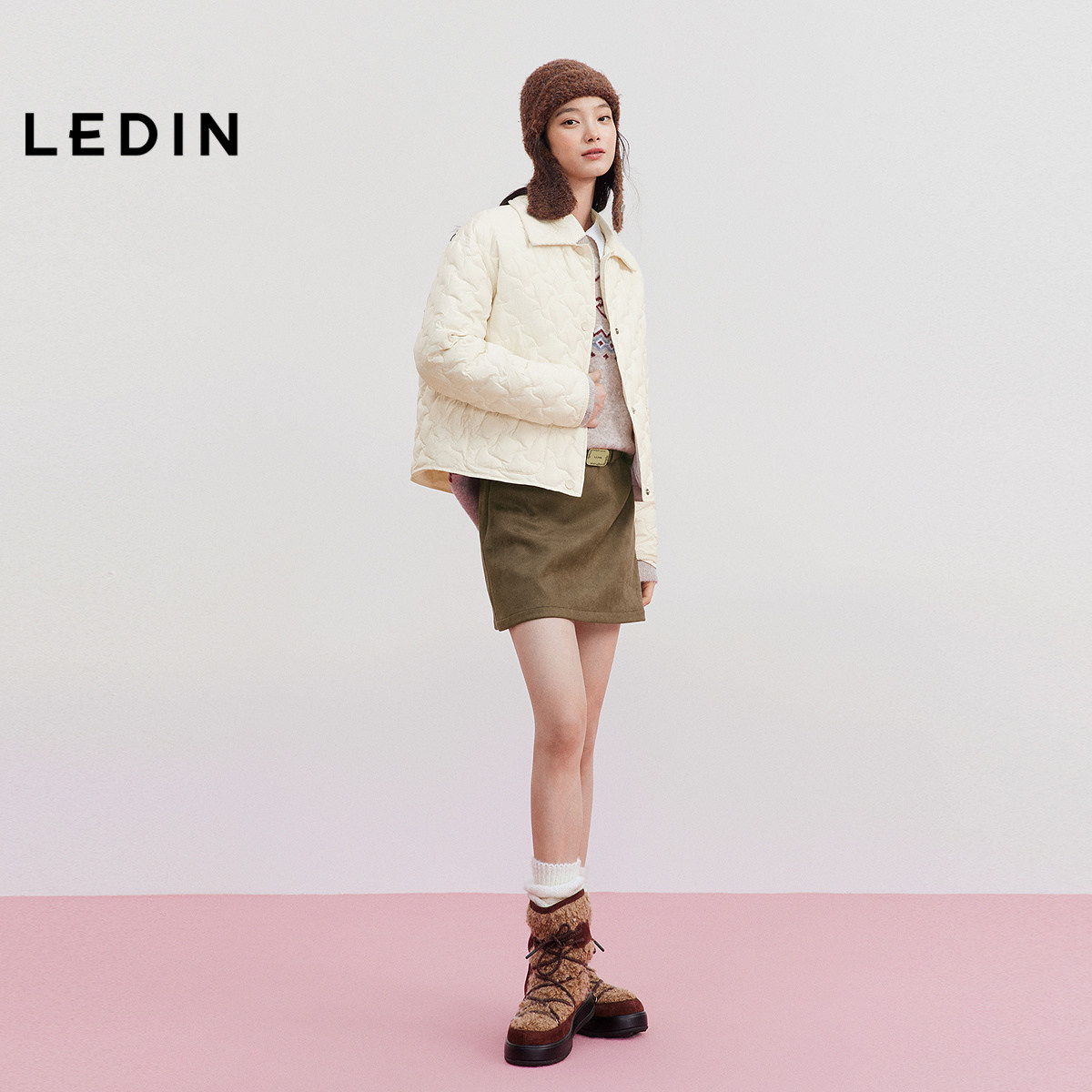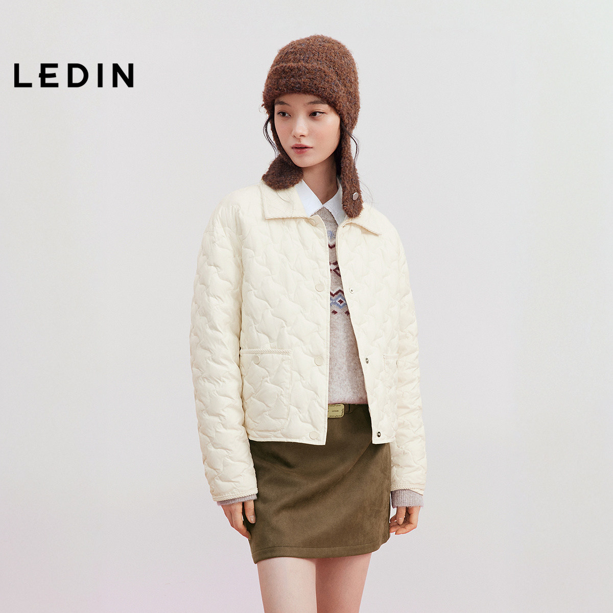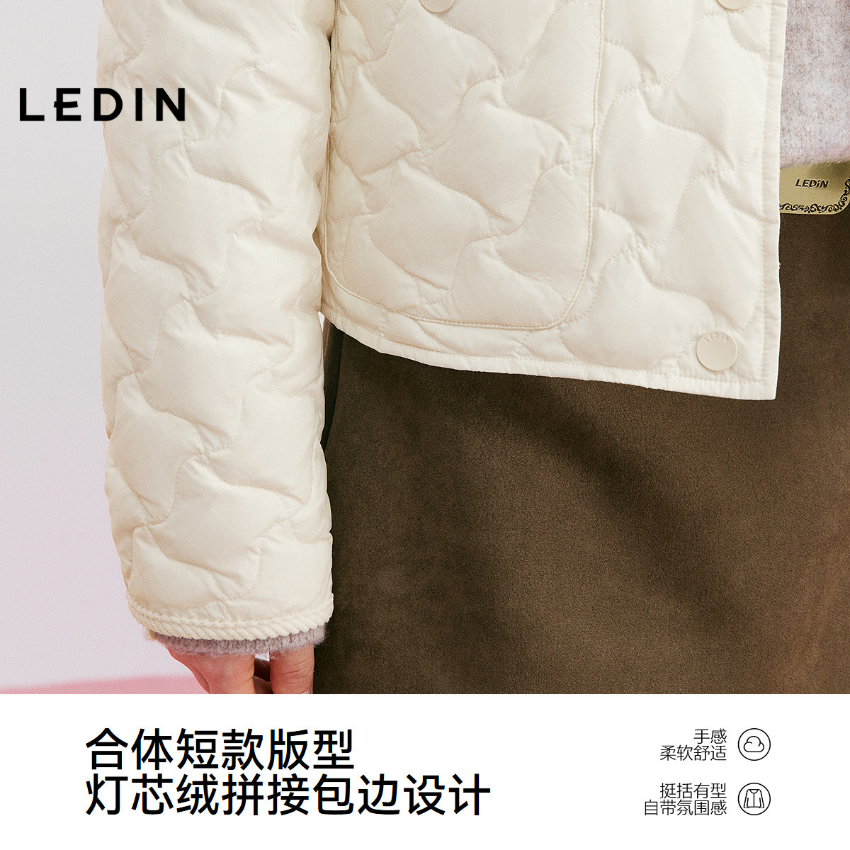 【火山岩】乐町短款衬衫轻薄羽绒服女装2025冬季新款灯芯绒拼接领