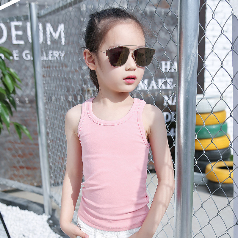 夏季中大童女童无袖黑白t恤纯棉小背心吊带衫 儿童上衣潮内搭外穿