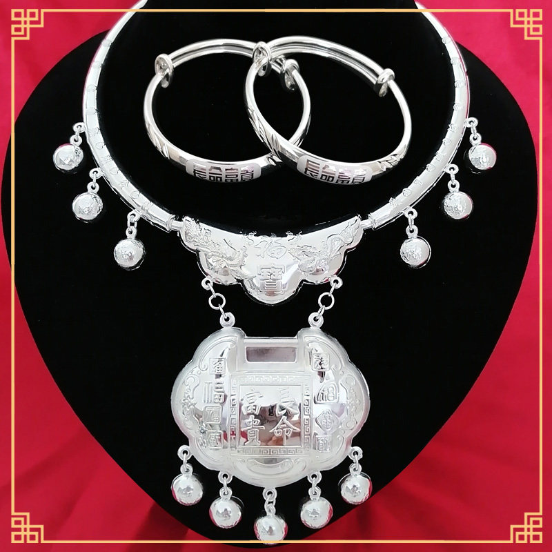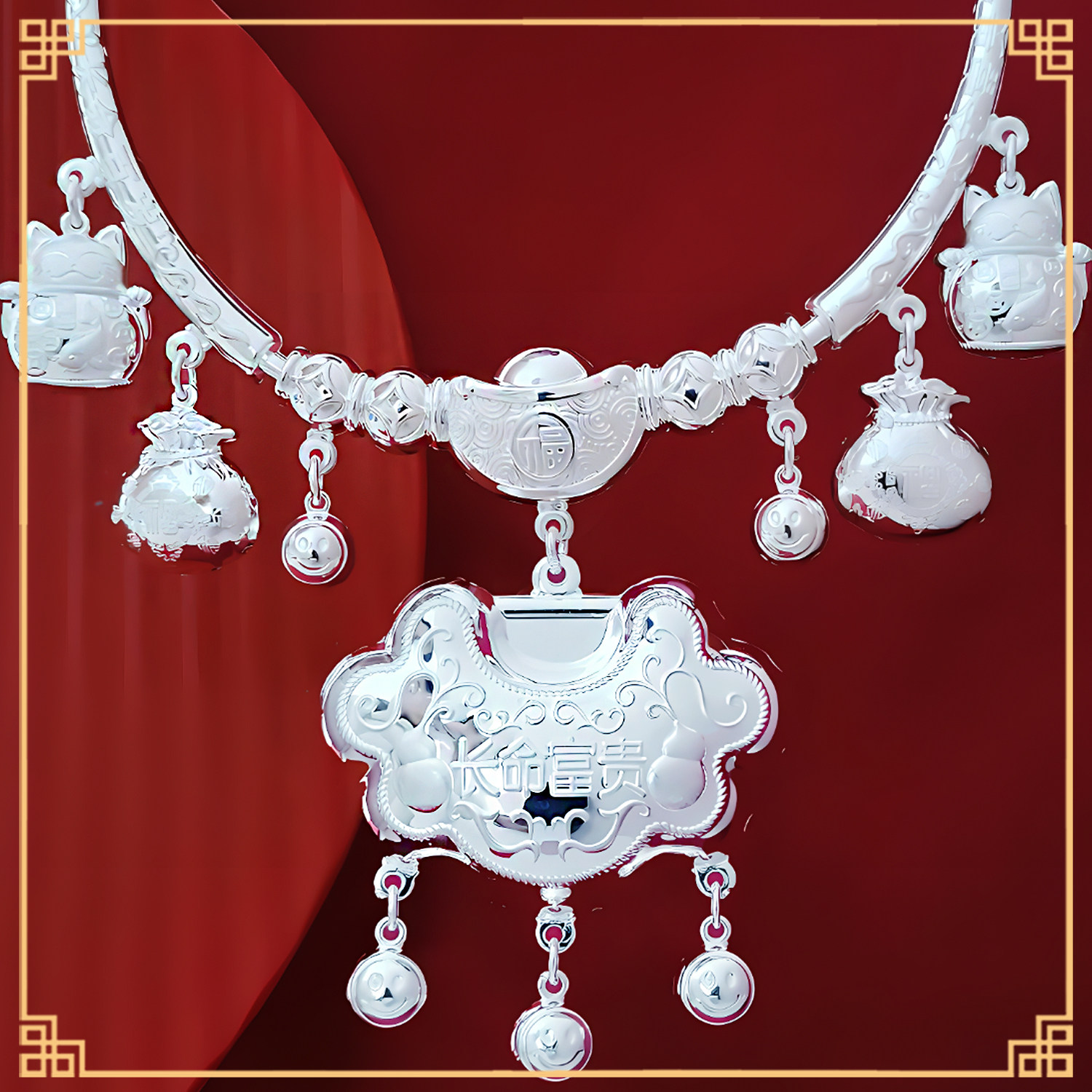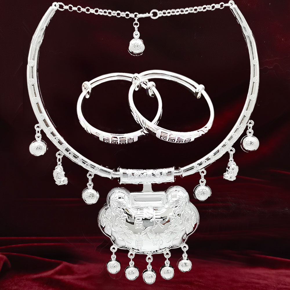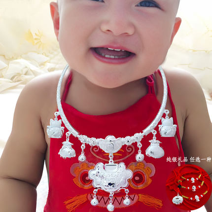 足银999长命锁宝宝周岁银项圈纯银儿童小孩婴儿满月银锁吊坠礼物