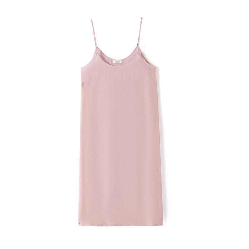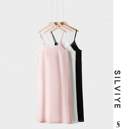 真丝吊带裙夏季100桑蚕丝双绉中长款连衣裙纯色内搭防透打底衬裙