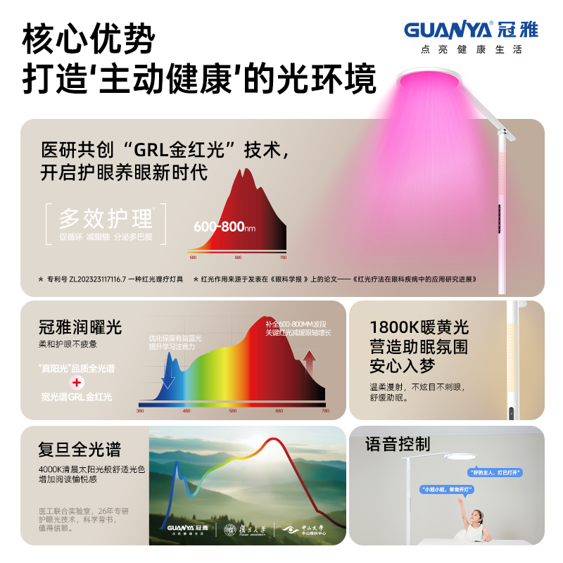 冠雅全光谱台灯落地护眼灯立式台灯学习书灯红光大路灯