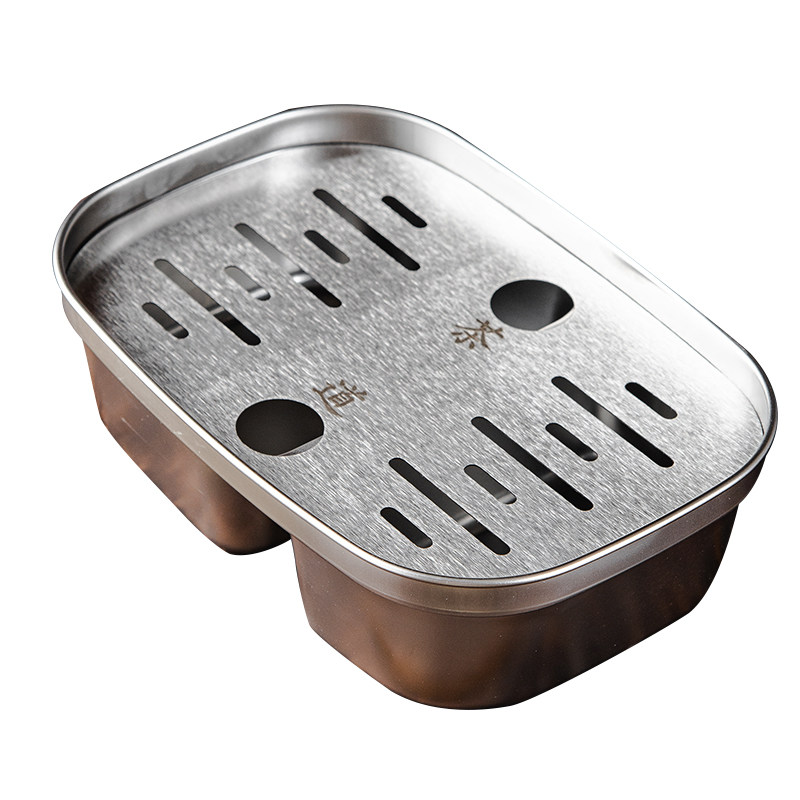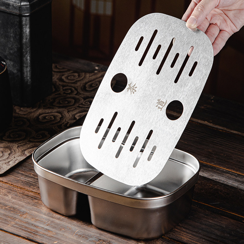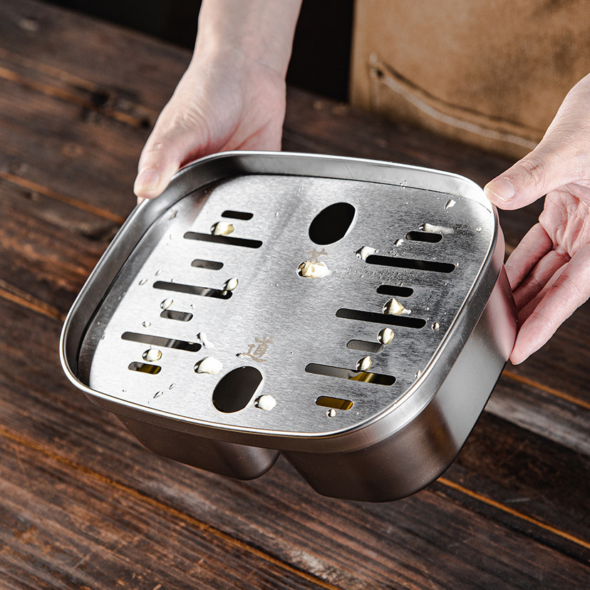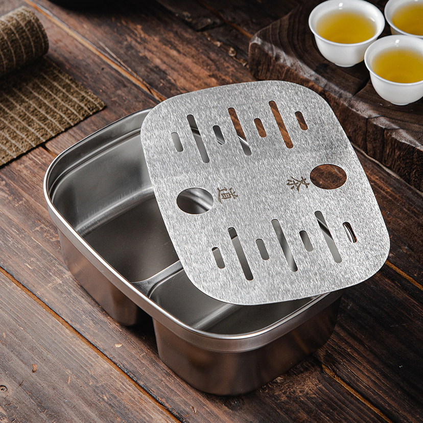 潮汕不锈钢功夫茶盘储水式家用现代户外便携式沥水托盘干泡台茶具