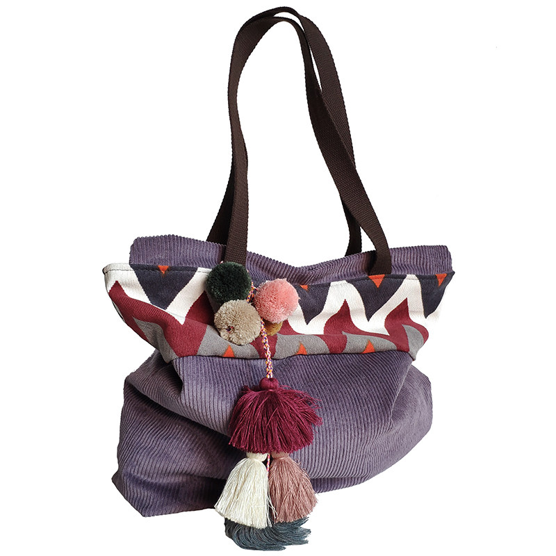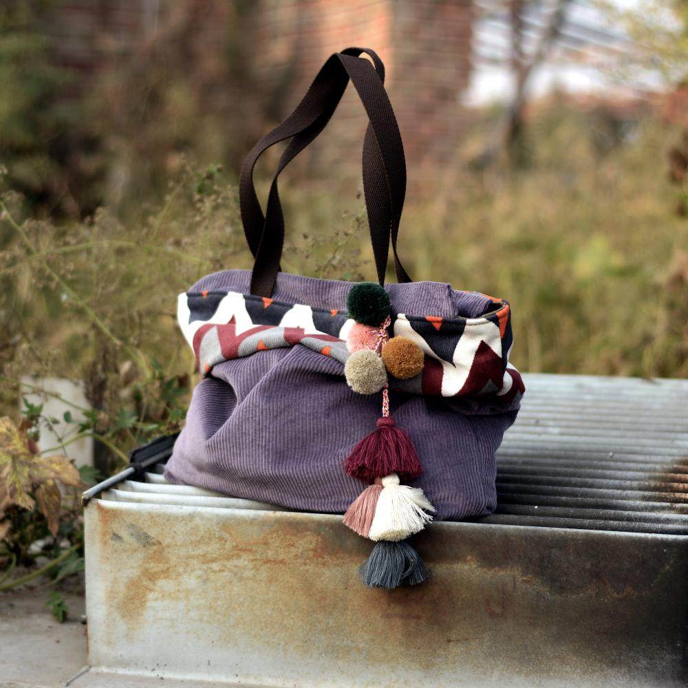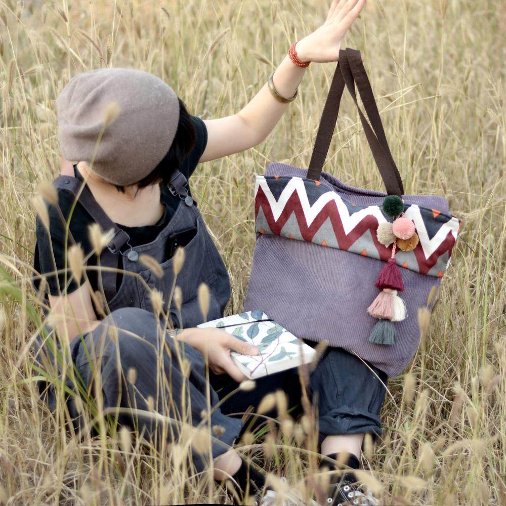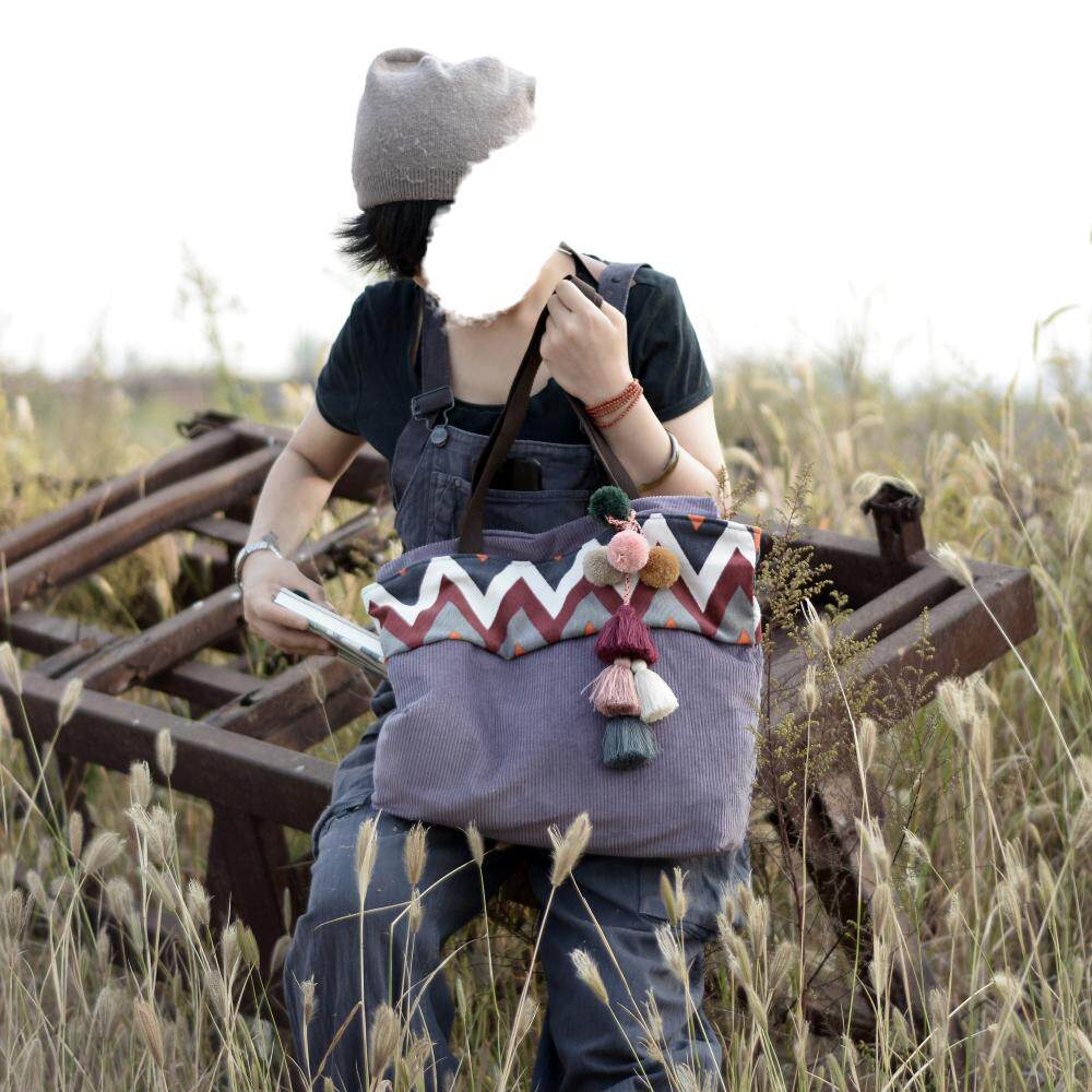 原创设计 文艺复古大容量女包 撞色灯芯绒书包 ins可爱流苏单肩包