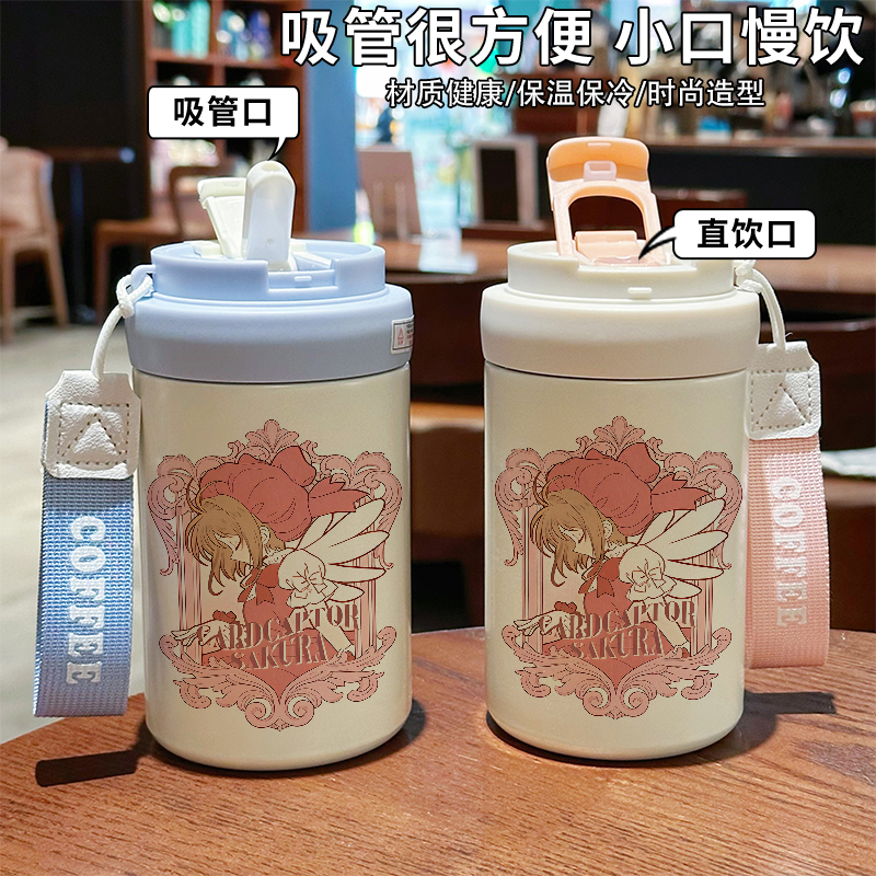 卡通小樱保温杯学生316不锈钢学生水杯女猫咪吸管便携定制logo