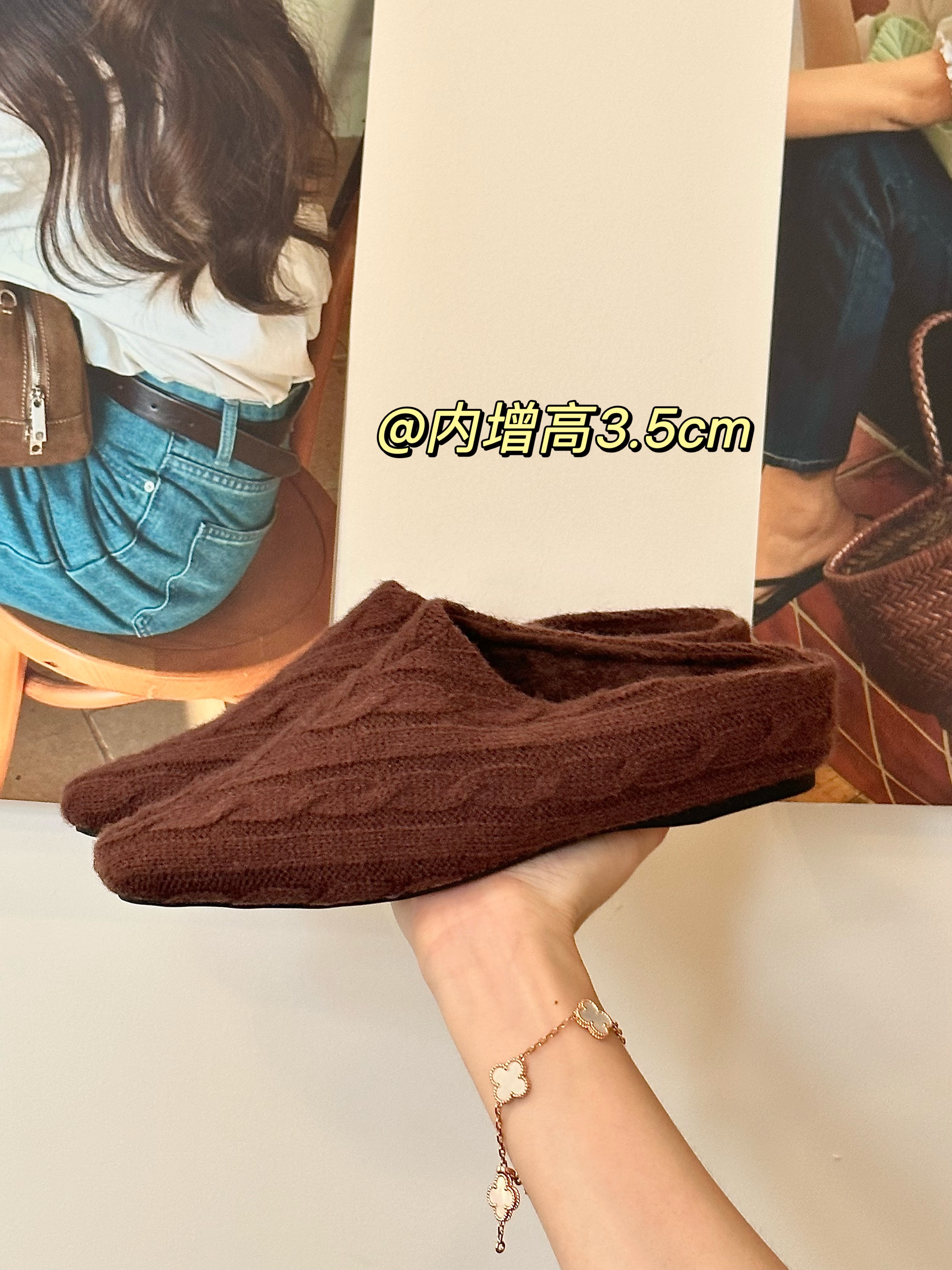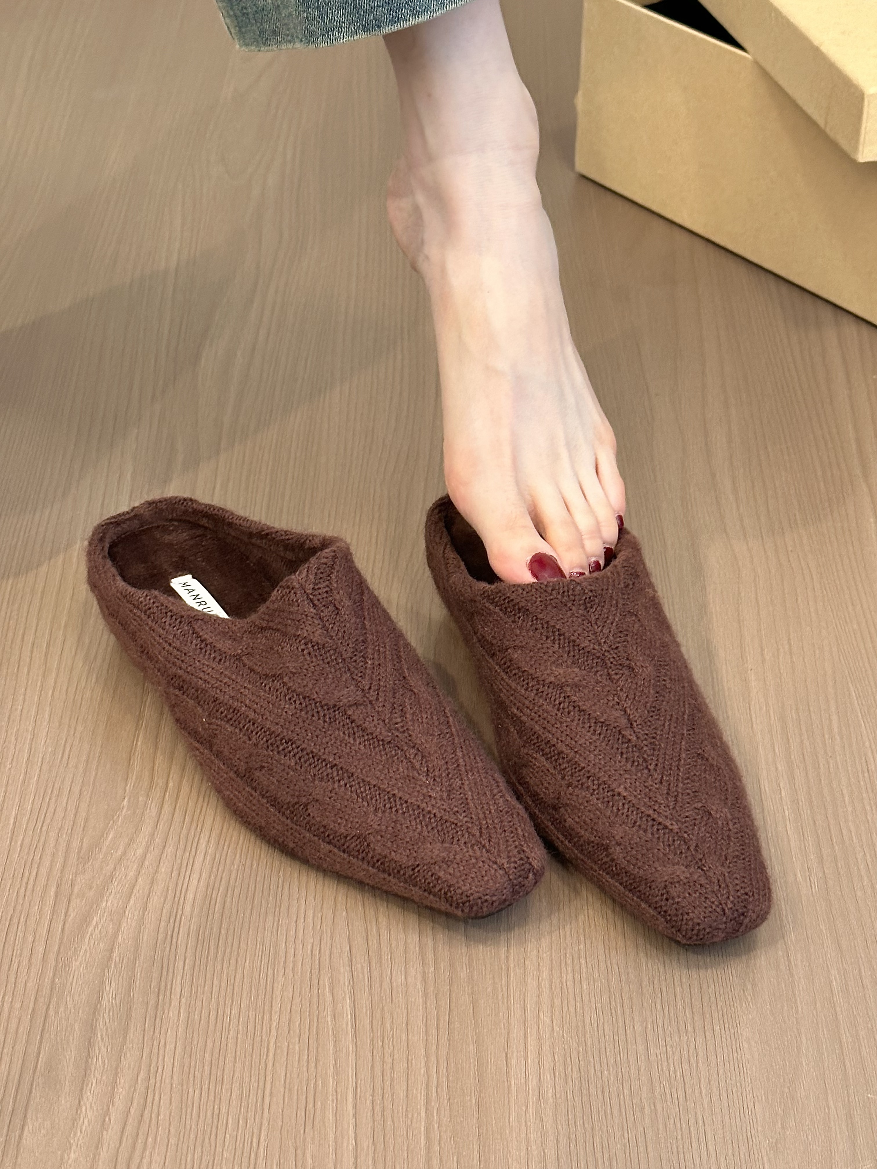 titing冬日暮色!气质针织方头内增高包头半拖鞋女秋外穿毛毛拖鞋