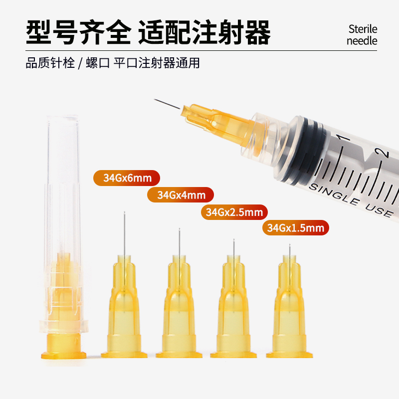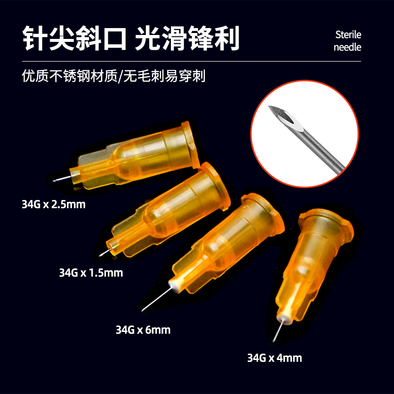 康普沃医用无菌34G小针头1.5/2.5/6/8mm一次性注射水光手打蚊子针