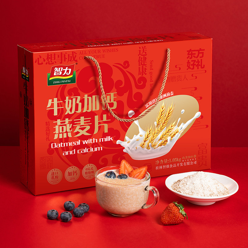 智力牛奶加钙燕麦片礼盒1050g营养健康早餐即食中秋节年货送礼品