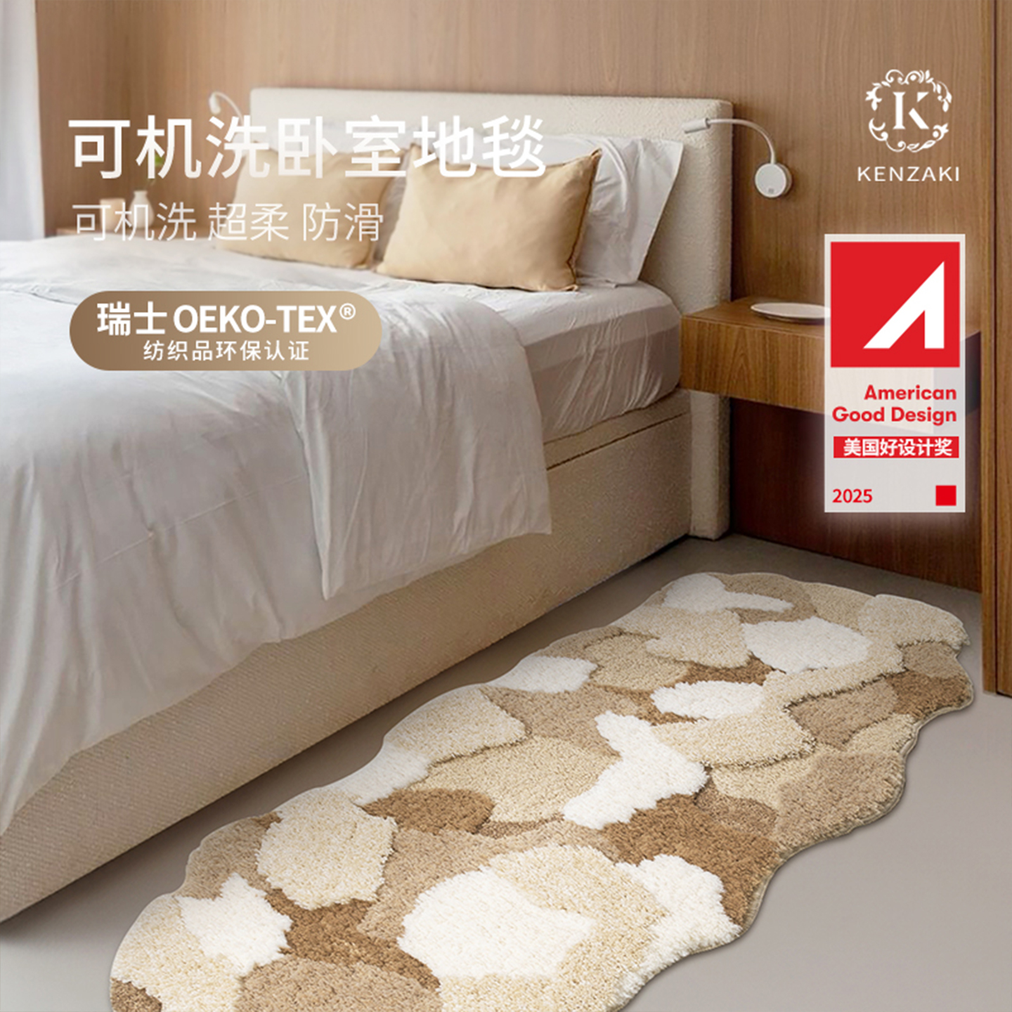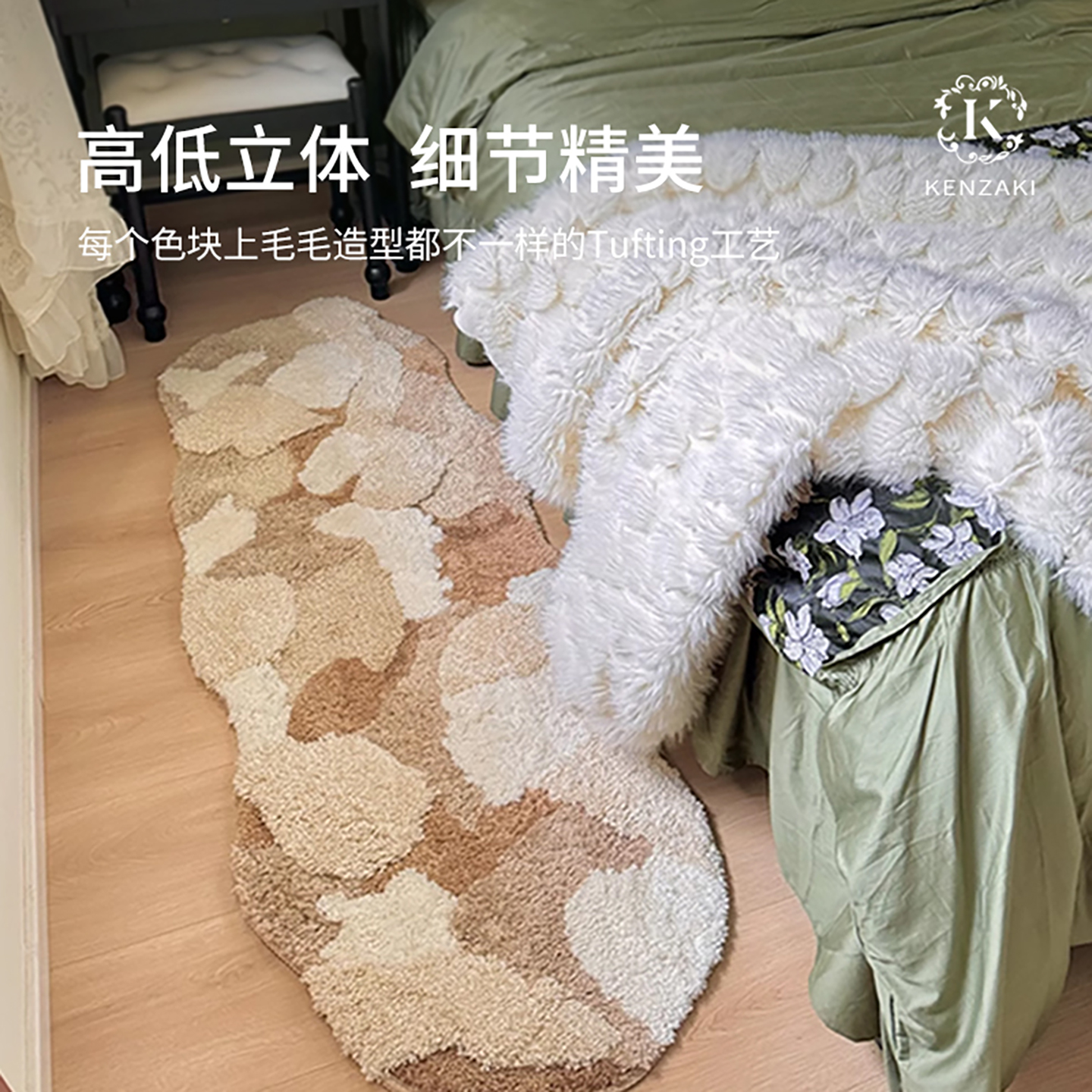 地毯卧室床边毯儿童房客厅轻奢高级防滑苔藓地毯防摔衣帽间可机洗