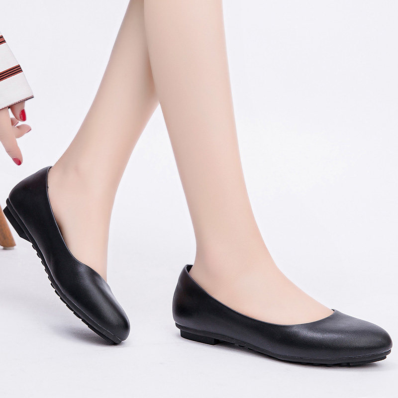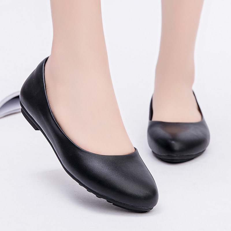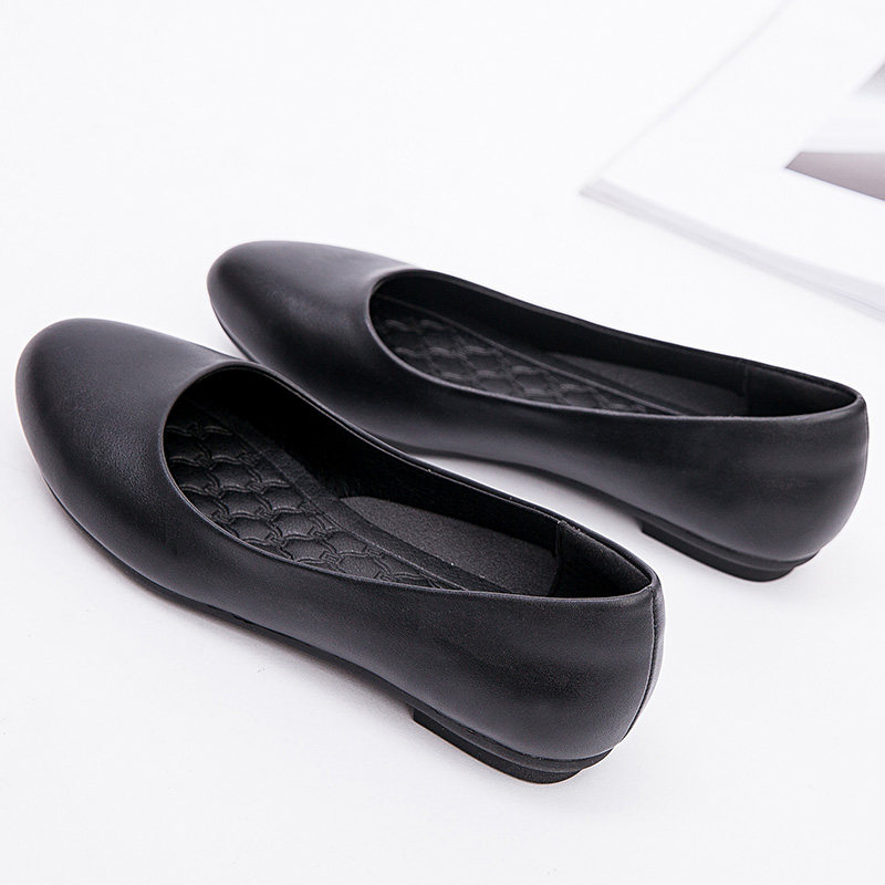 舒服平底瓢鞋黑色单鞋女豆豆鞋上班工作鞋不累脚平跟皮鞋软底圆头