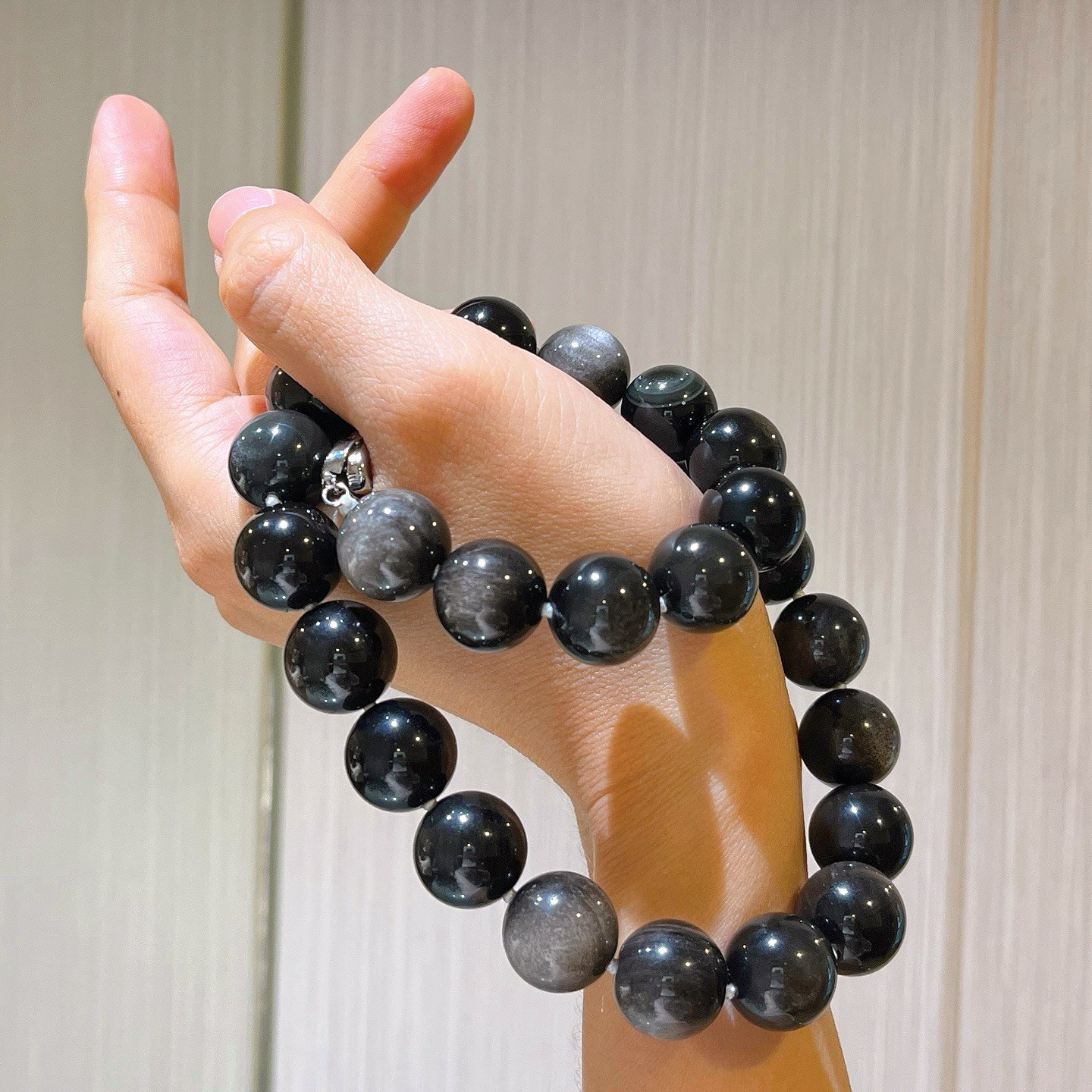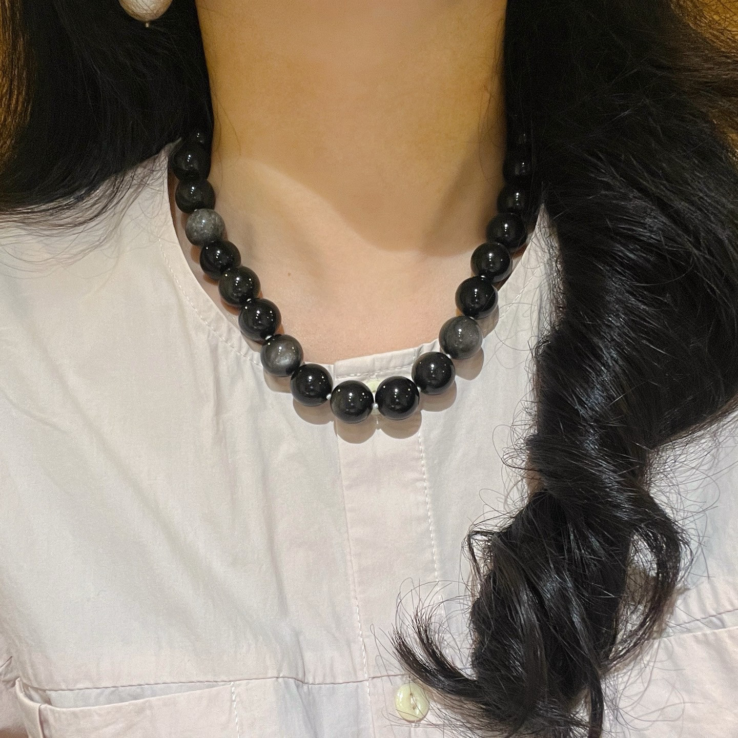 14mm大颗粒天然暗夜系银曜石项链锁骨链