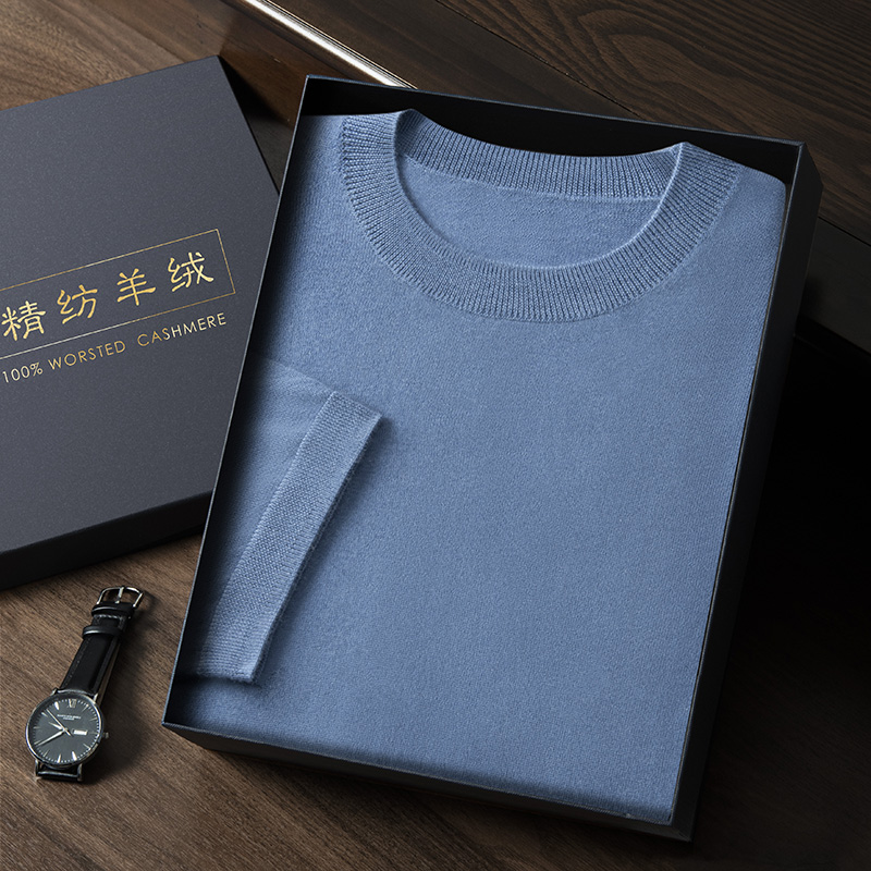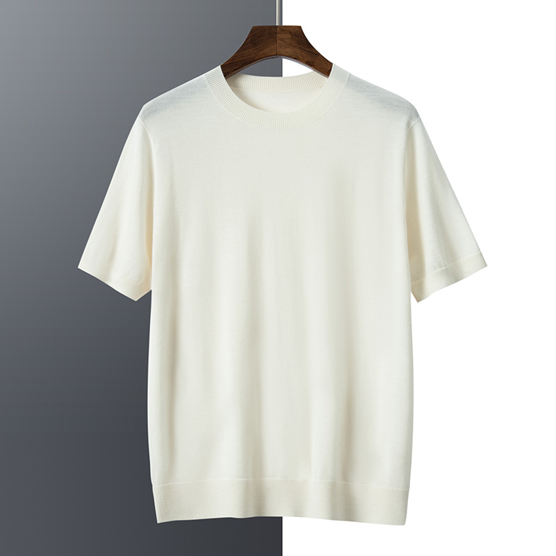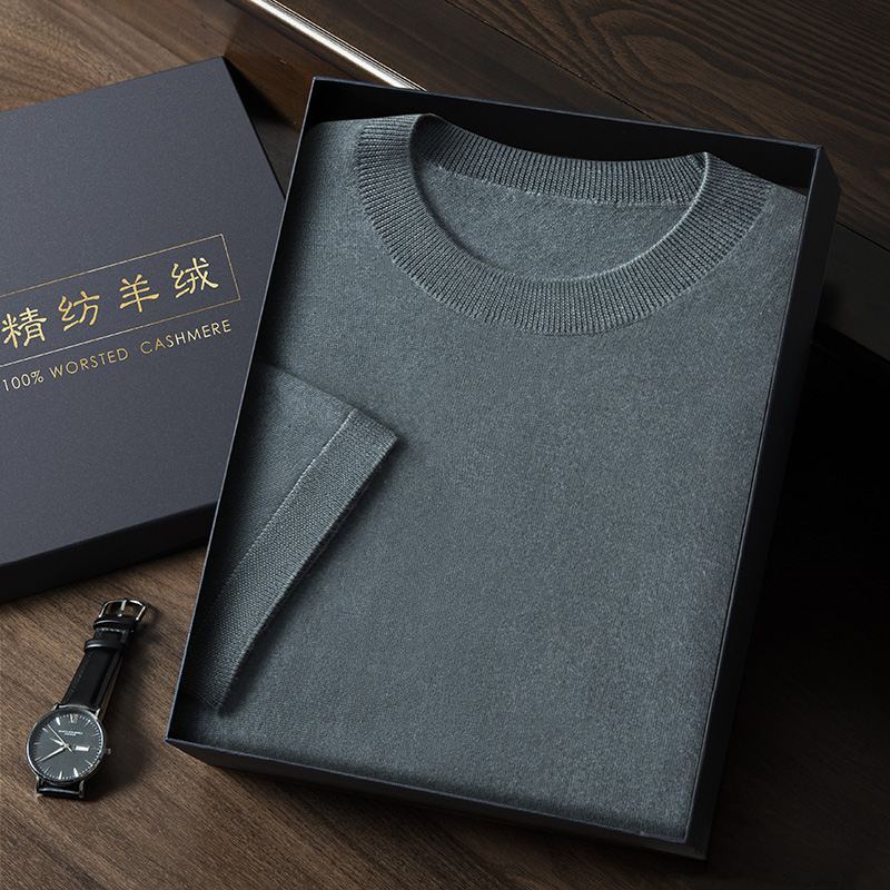 短袖T恤男100%精纺纯山羊绒衫夏针织打底半袖体恤衫圆领宽松汗衫