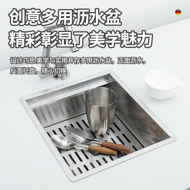 304不锈钢吧台小水槽隐形单槽带盖板厨房洗菜盆洗碗中岛台沥水池