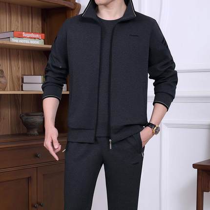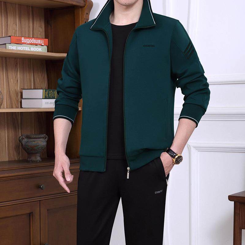 中老年秋季运7228029动套男春秋外爸爸大装码男士套装休闲运动服