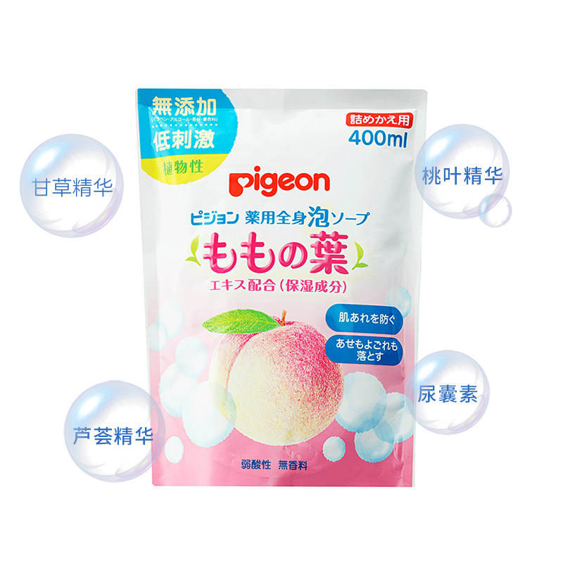 【自营】日本贝亲婴幼儿桃叶精华泡沫洗发沐浴露-补充装400ml