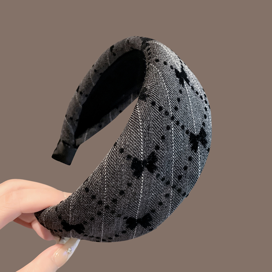 韩版复古格纹发箍女精致宽边高颅顶头箍精致百搭灰色蝴蝶结压发卡