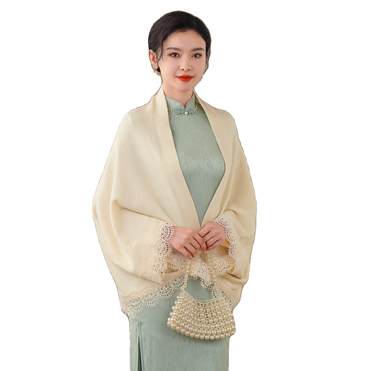 春秋配旗袍披肩外搭高端羊绒斗篷围巾两用秋冬礼服气质时尚女外披