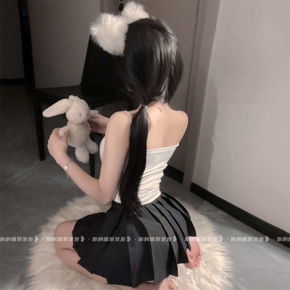 喵:萌系女友*日系卡哇伊可爱套装辣妹风吊带背心美式JK超短裙女