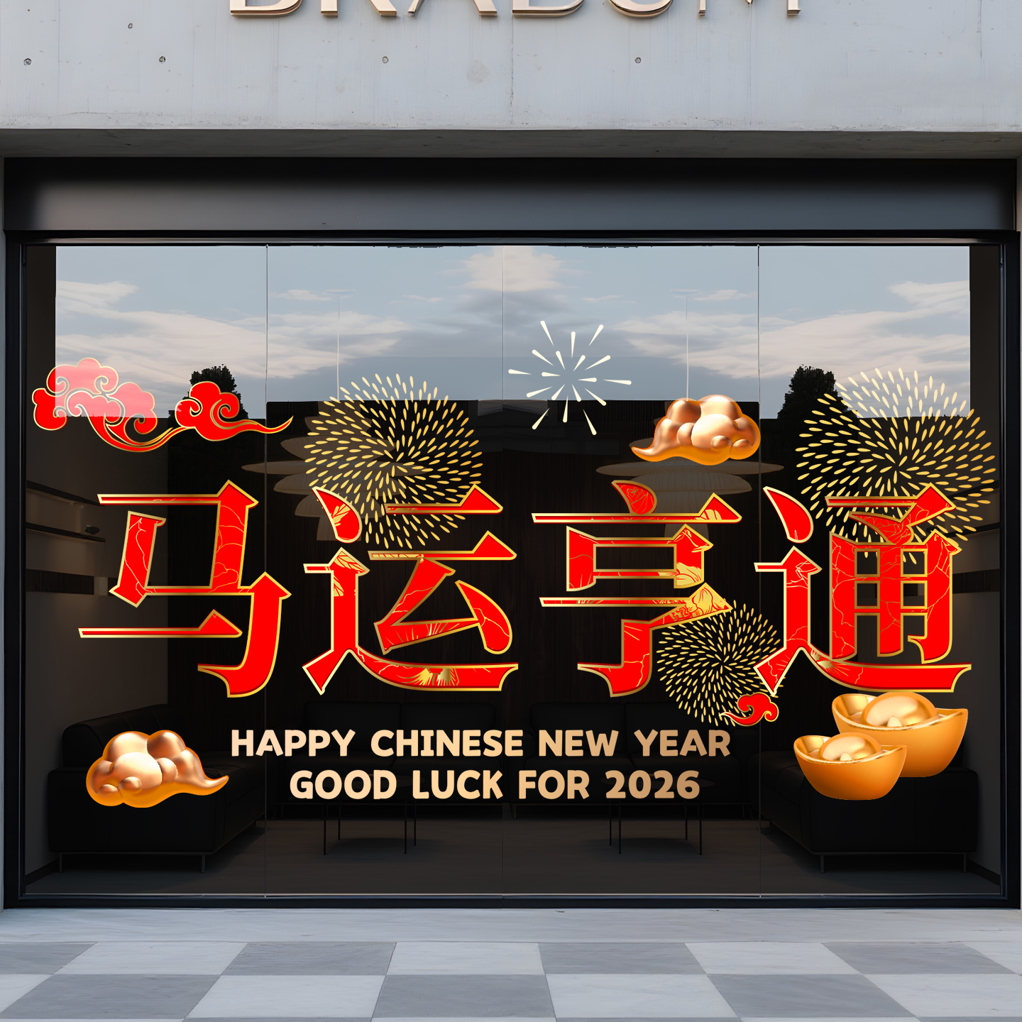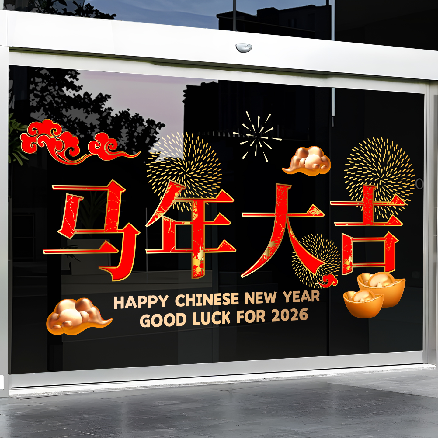 2026马年大吉窗花窗贴春节新年快乐玻璃贴纸橱窗氛围场景布置装饰