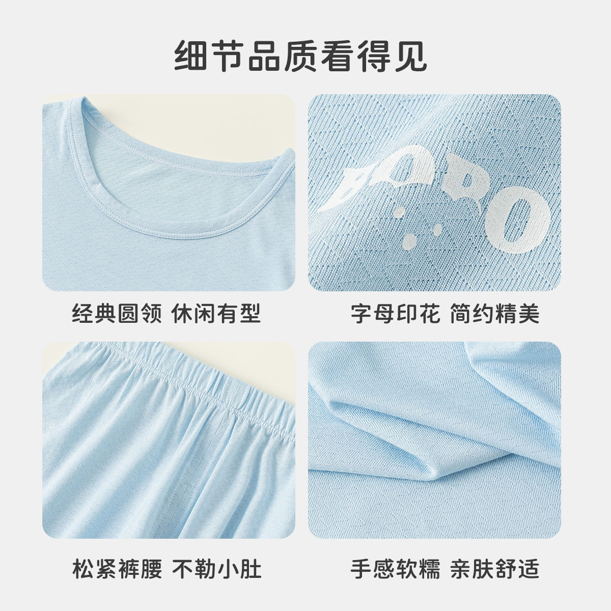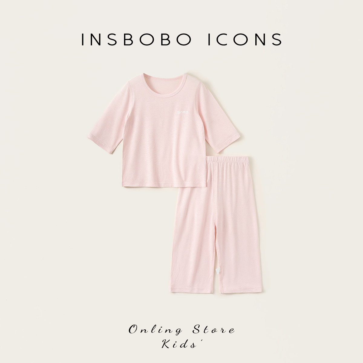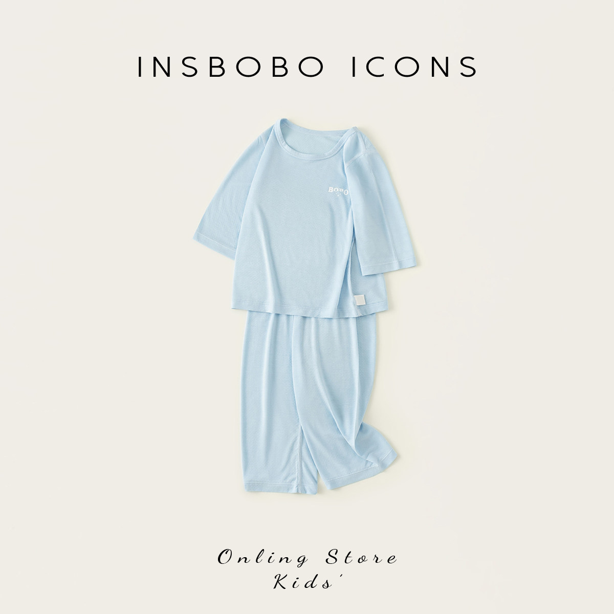 INSbobo儿童纯色印花家居服套装