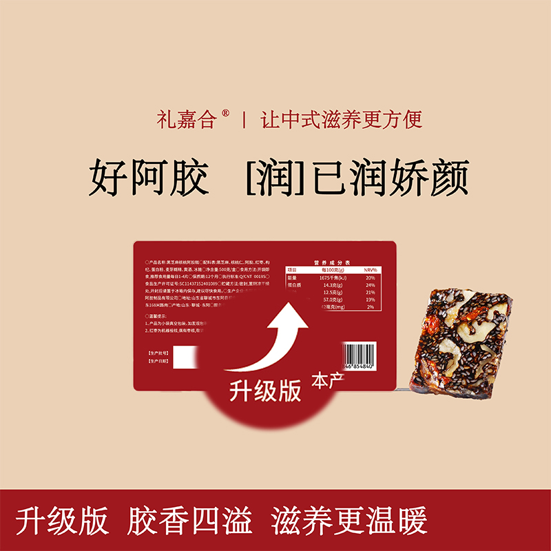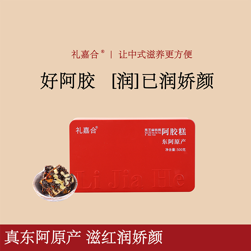 节日礼盒!黑芝麻核桃阿胶糕500g铁盒东阿产即食红枣枸杞固元膏