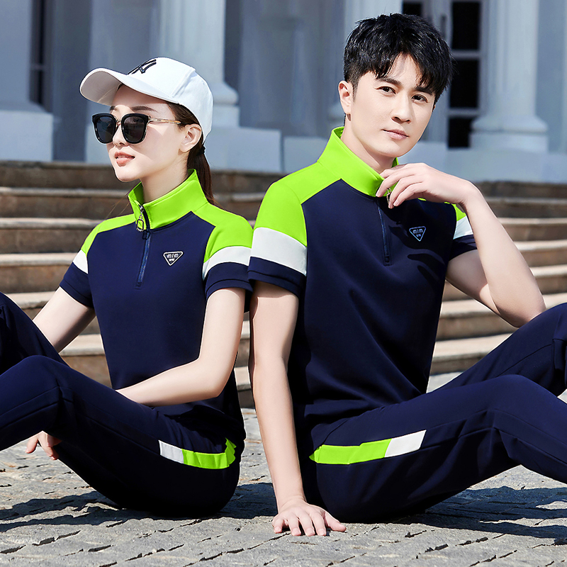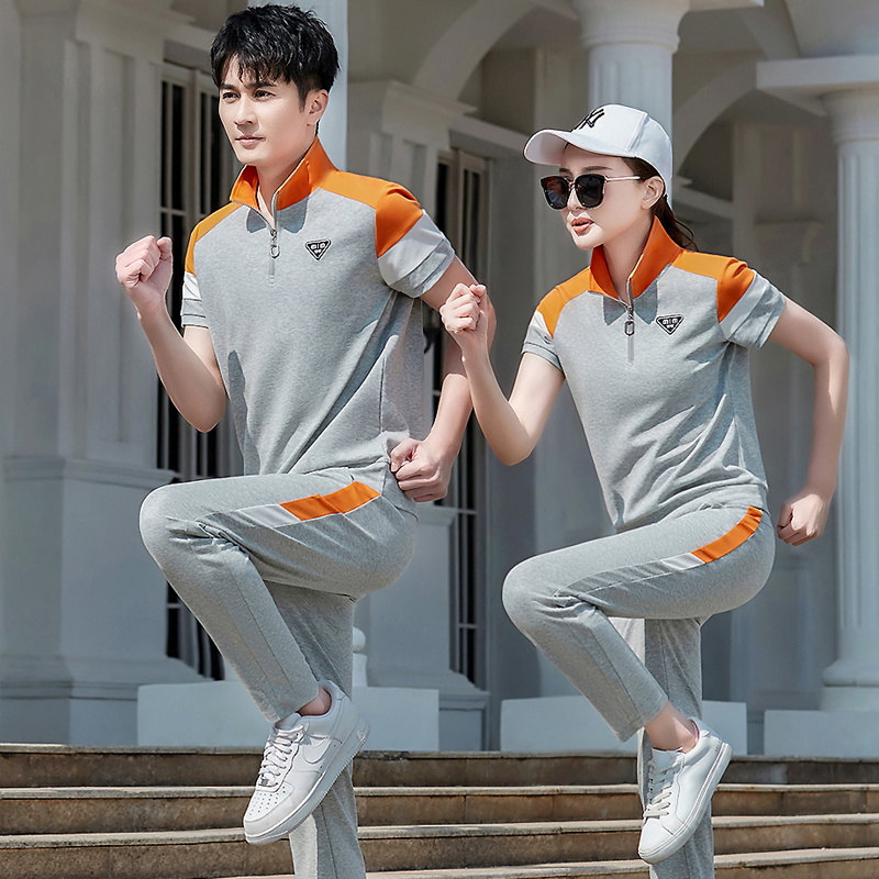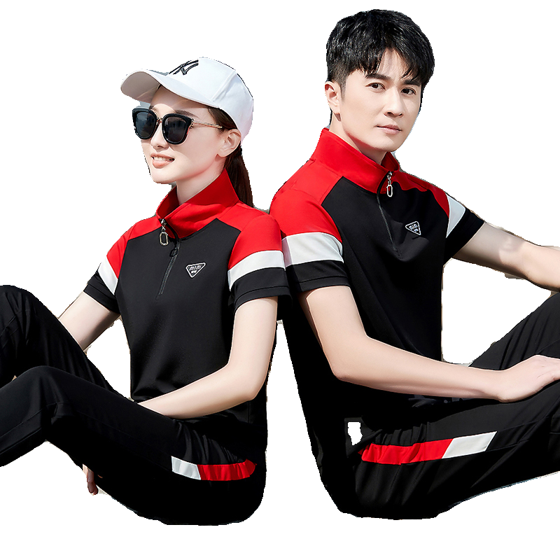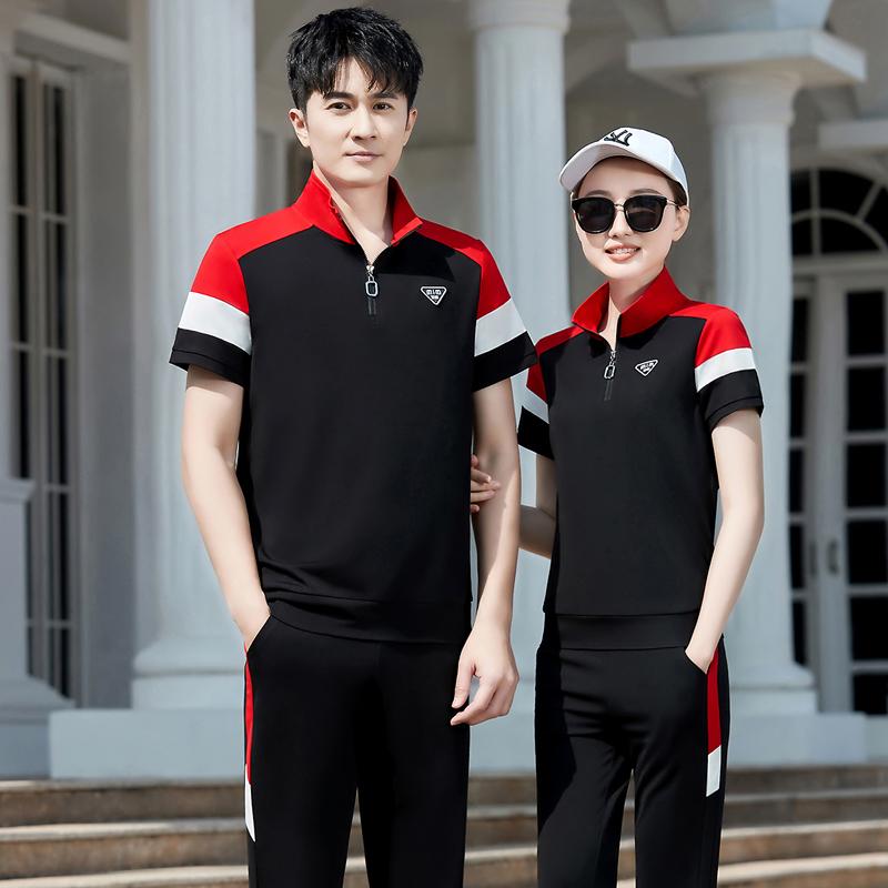2024夏季新款男士短袖立领长裤拼色团体情侣卫衣跑步运动服套装女