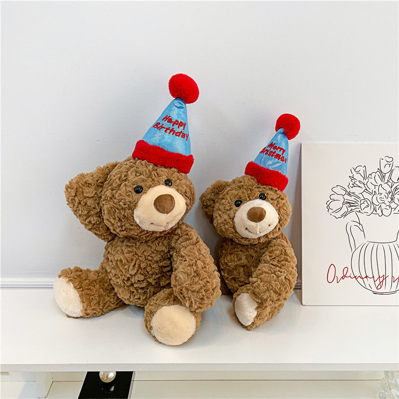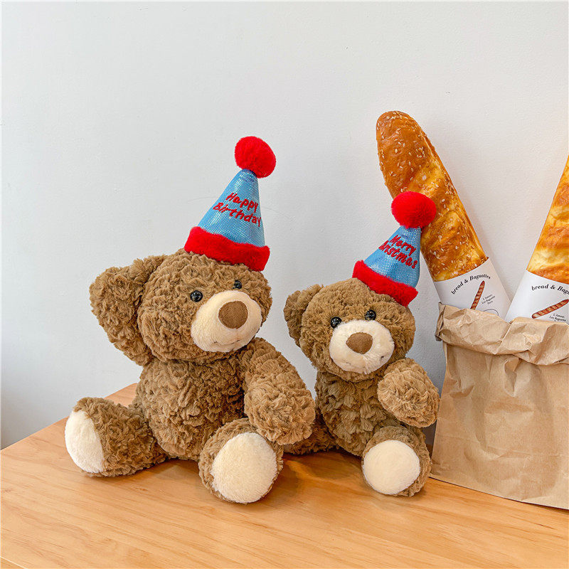 新款生日帽熊毛绒玩具泰迪熊有bear来小熊送女生生日礼物抱枕