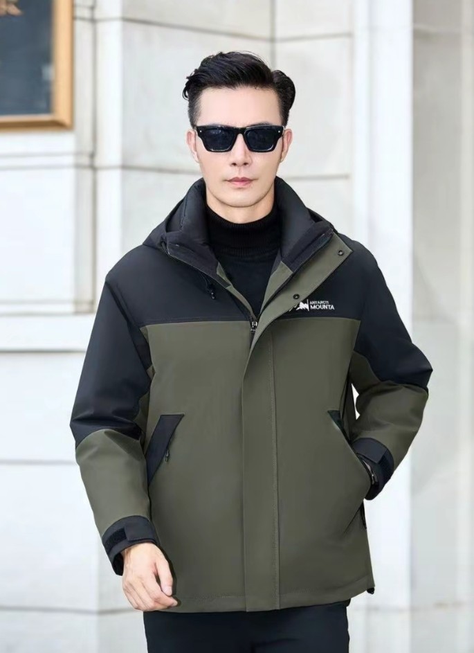男人船王卡麦隆鳄鱼冬季男士可脱卸内胆防寒羽绒服商务冲锋衣拼接