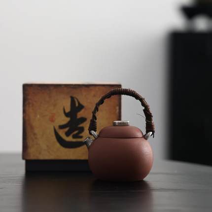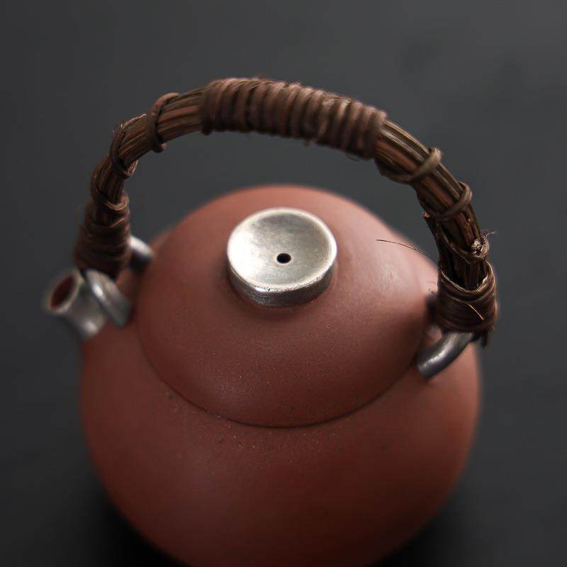 藤编手提圆壶鎏银小茶壶提梁壶家用高档原陶紫砂泡茶壶单壶小品壶