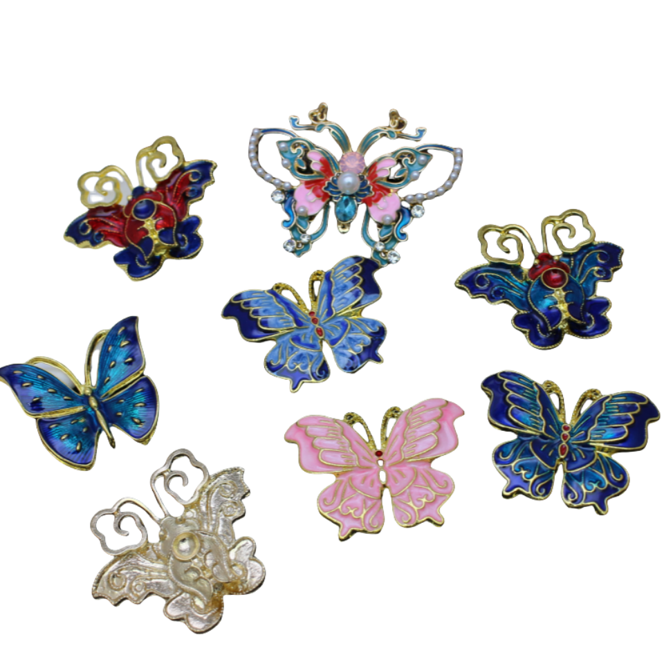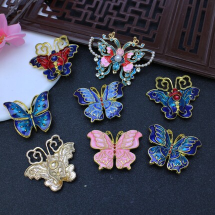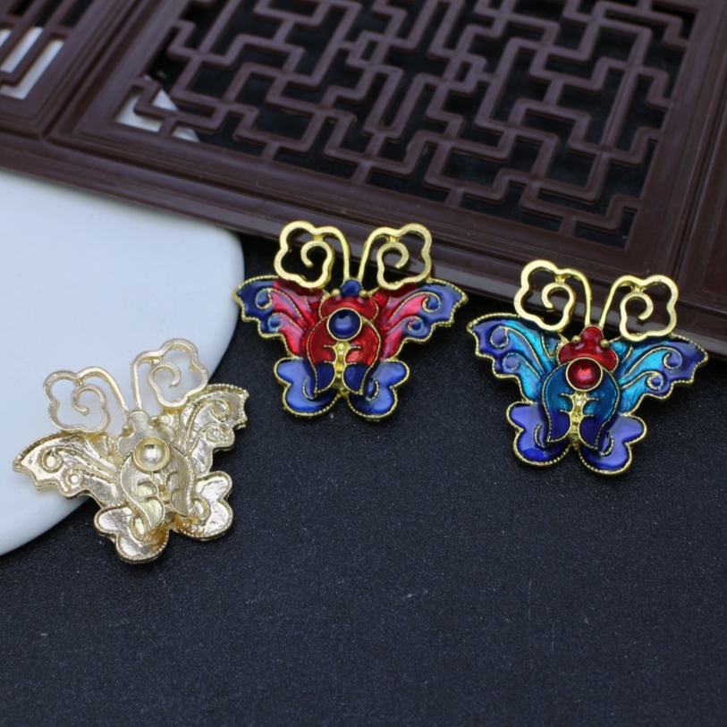 新款景泰蓝滴油蝴蝶滴油烧蓝合金配件古风DIY手作团扇装饰材料