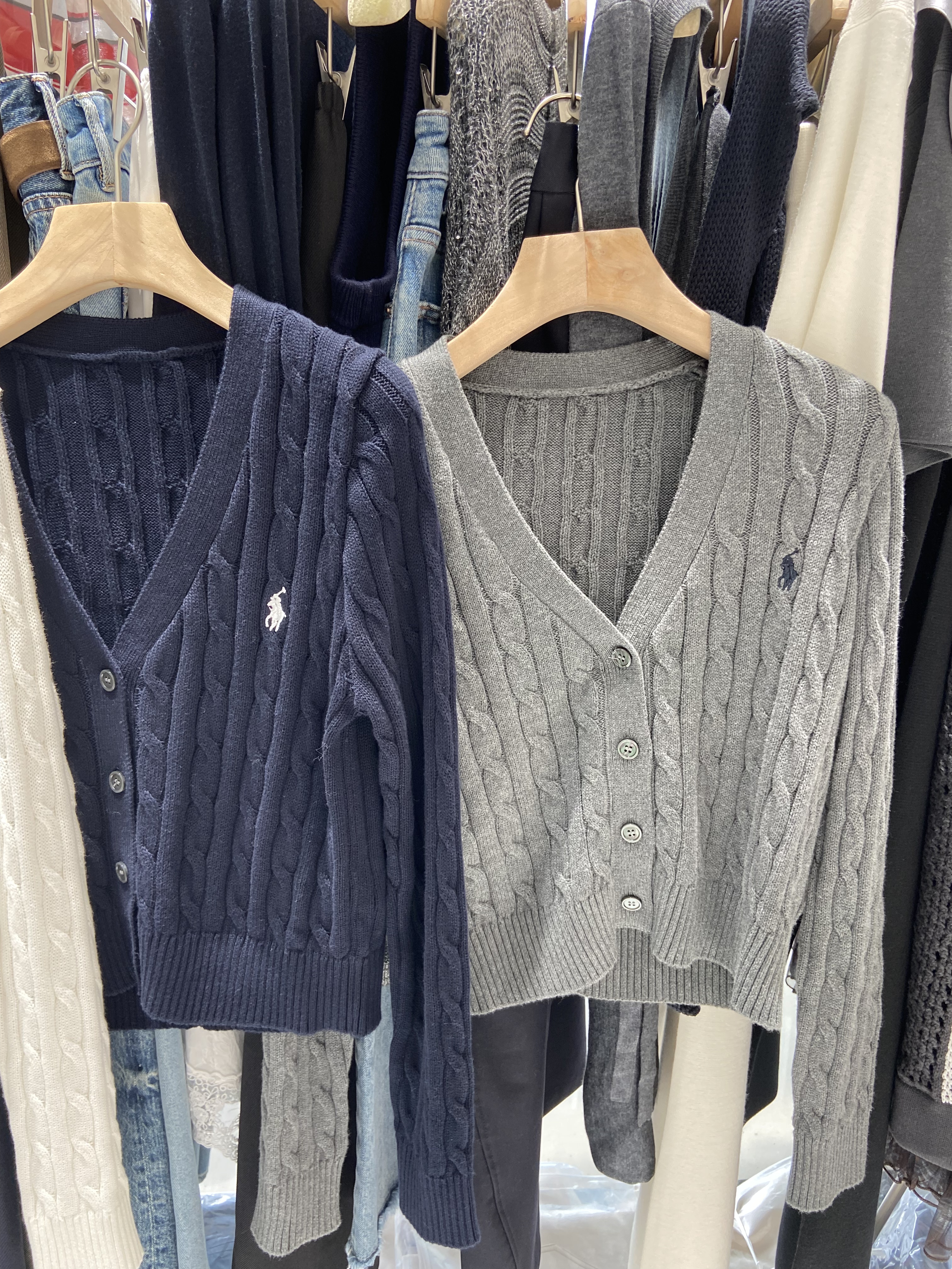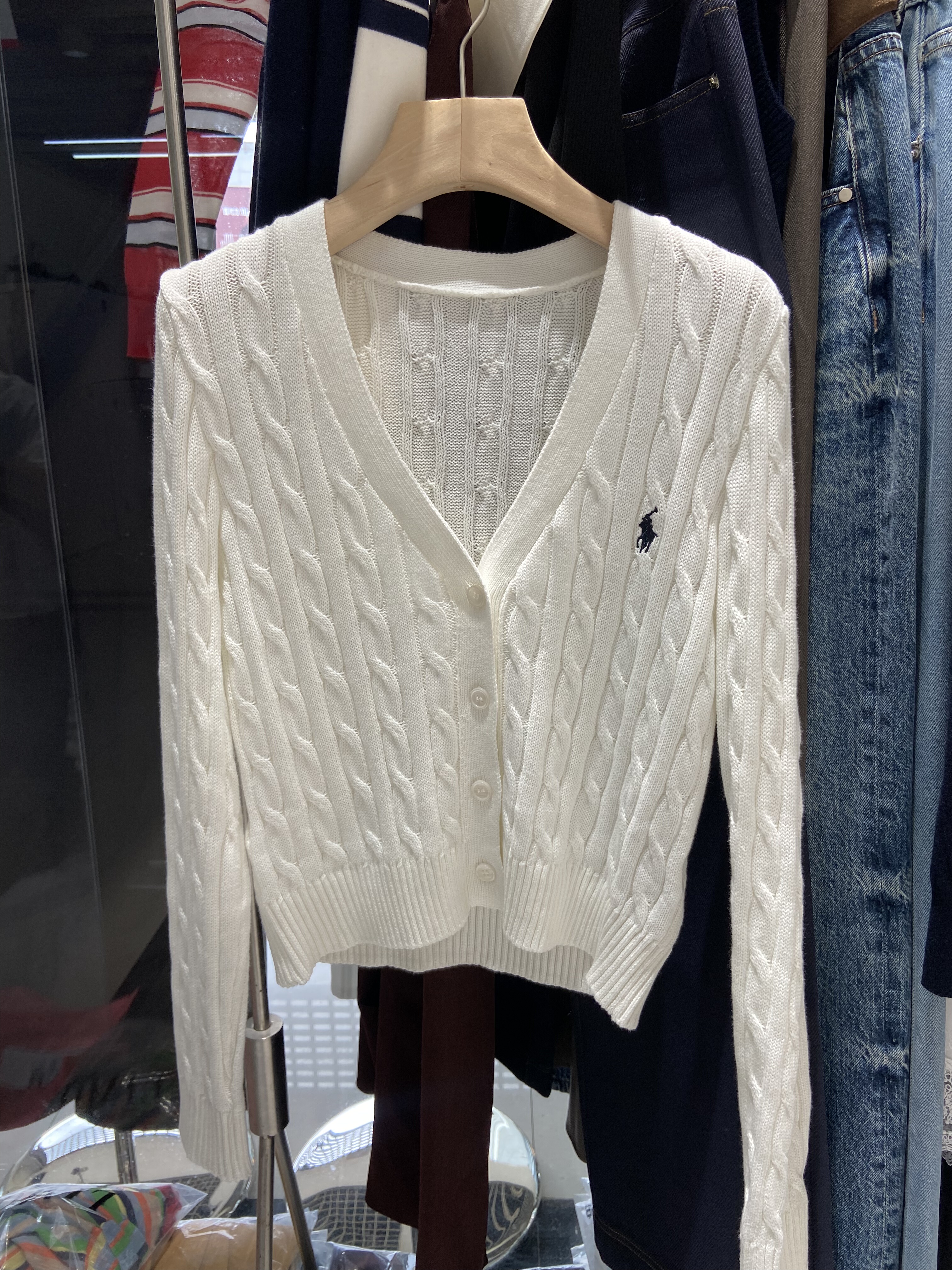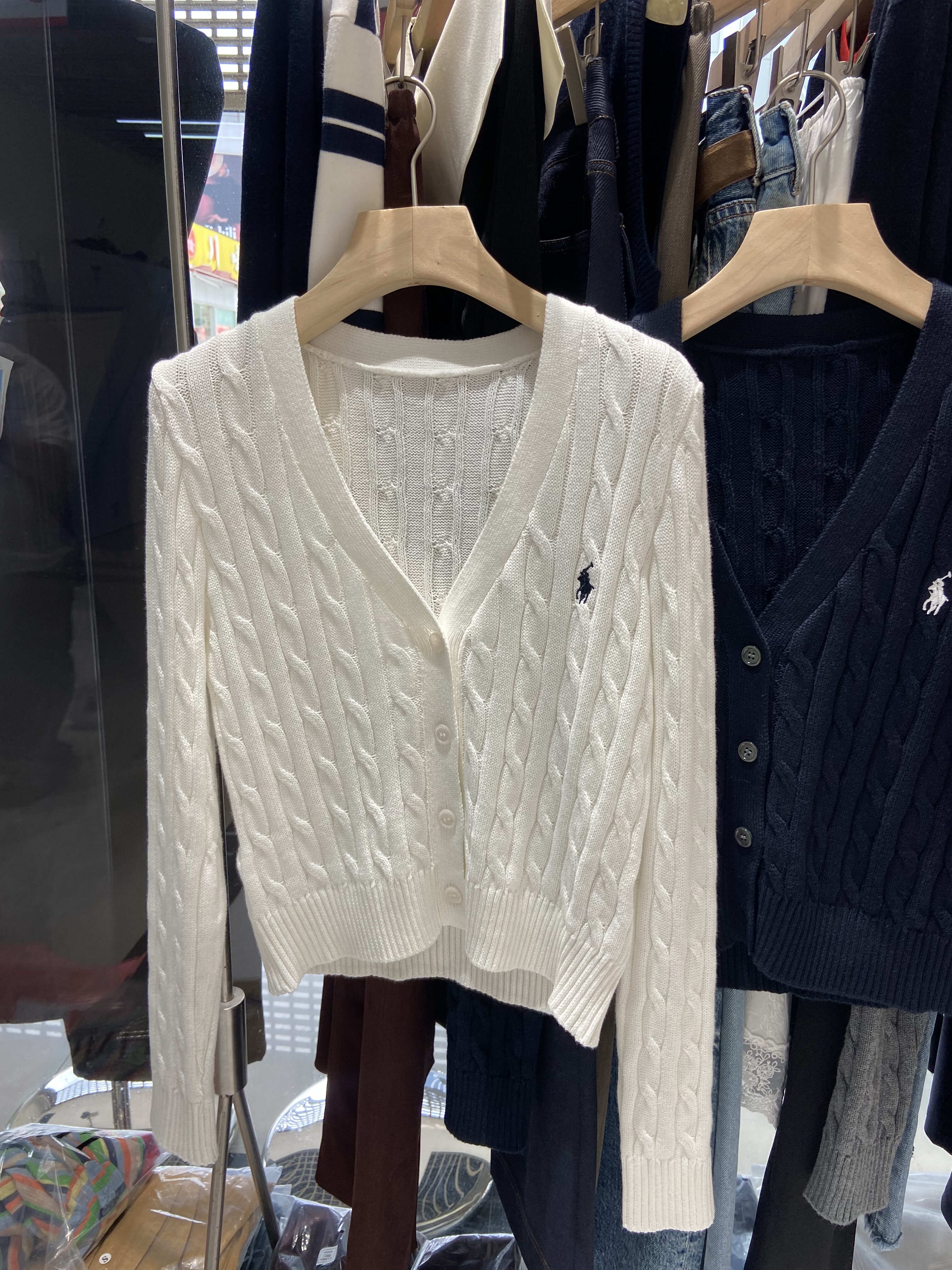 INHERE秋冬经典小马刺绣V领开衫毛衣外套女士马卡龙色系针织上衣