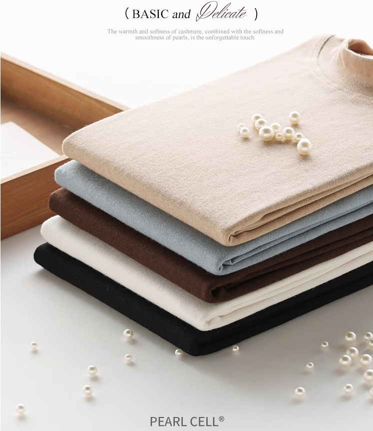 墙裂推荐!珍珠山羊绒共混打底衫女秋冬内搭发热半高领套头针织衫
