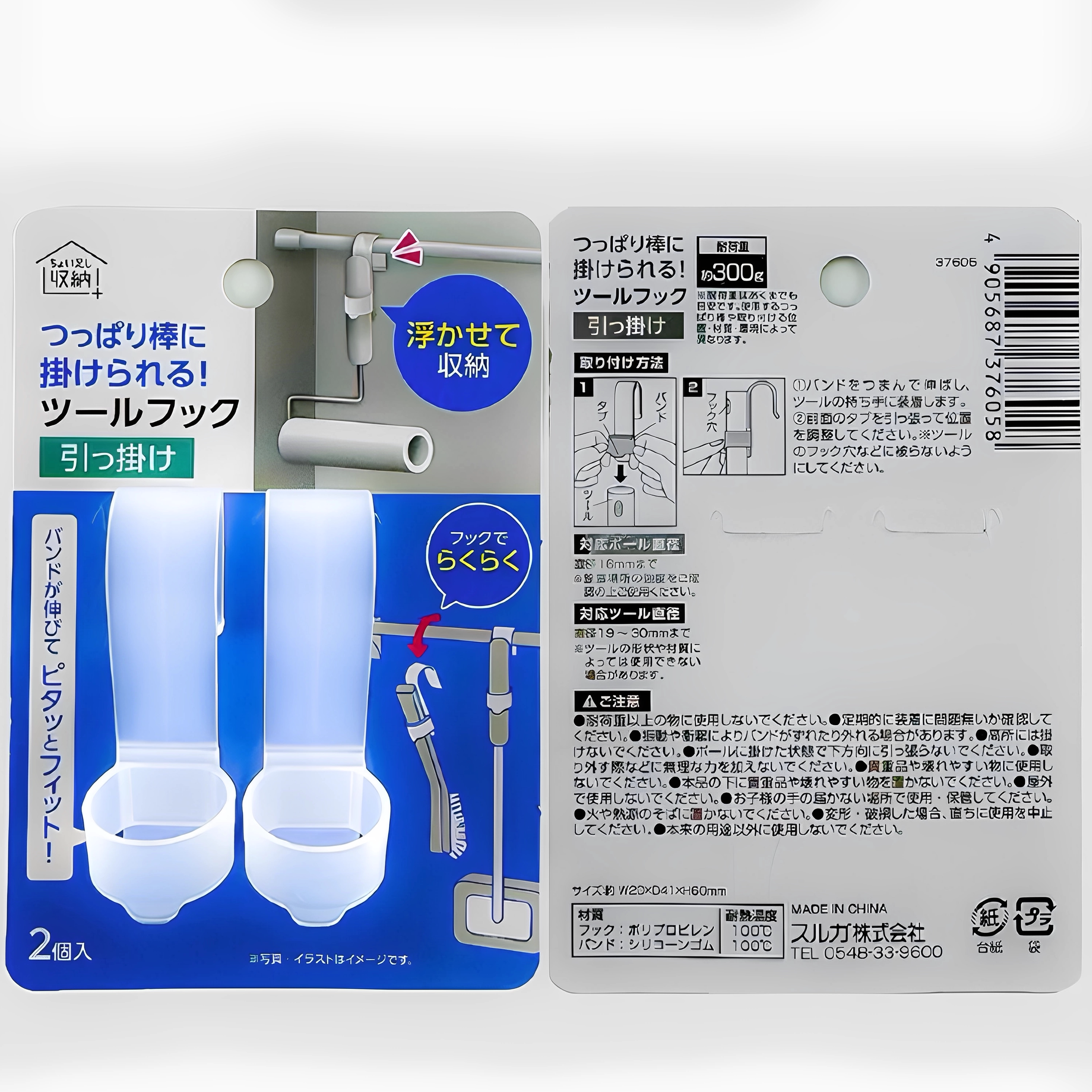 出口日本可调节松紧多用途挂钩2个装家用清洁工具悬挂收纳小钩子