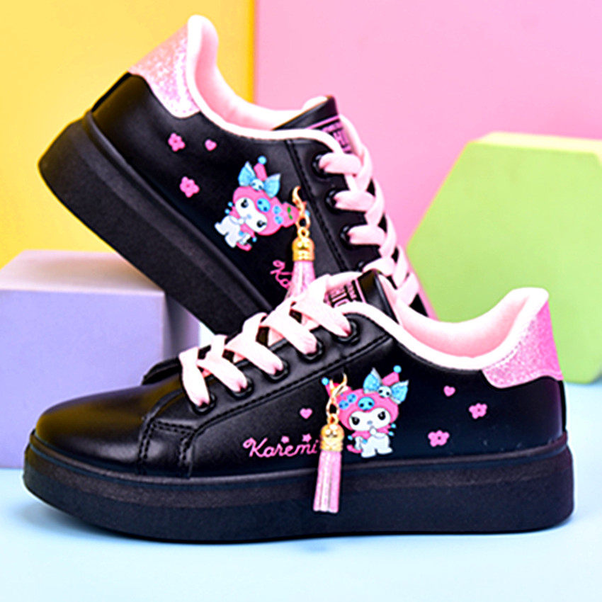 女童春秋皮面防水板鞋学生单跑鞋