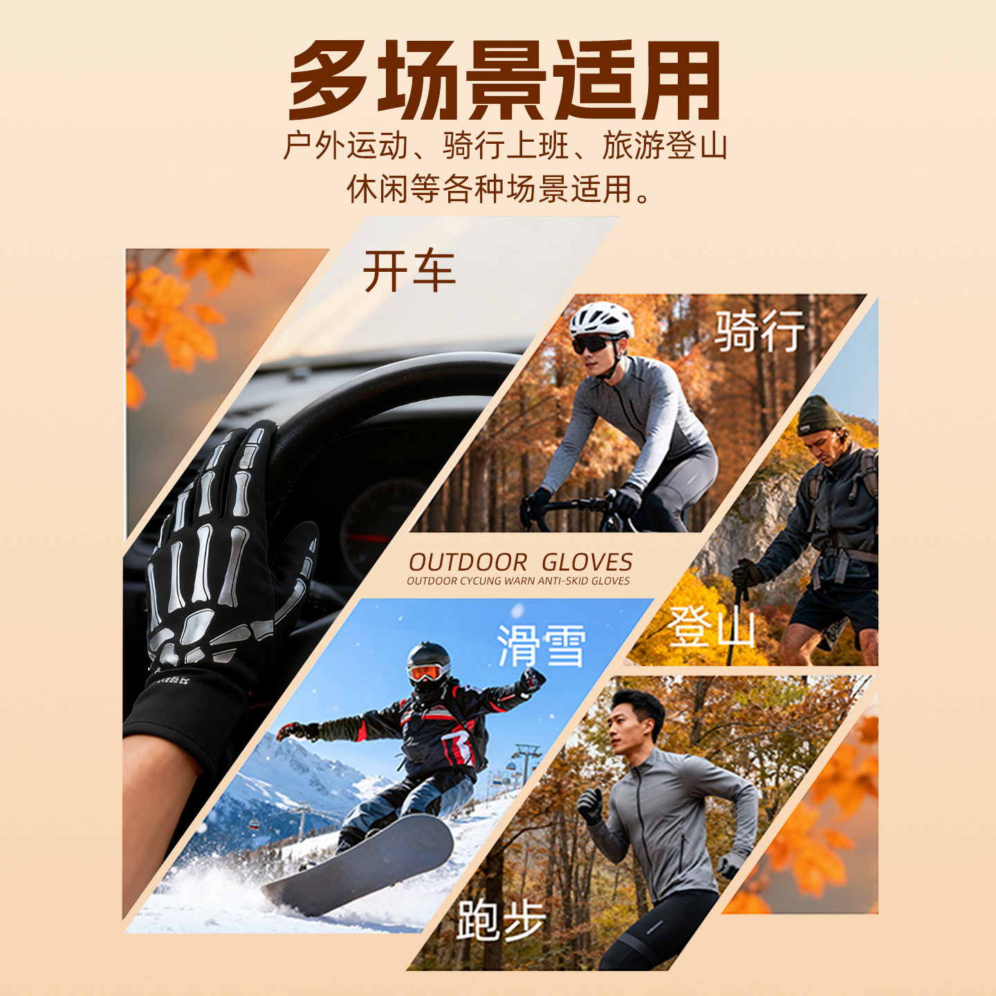 KELME卡尔美手套户外骑行男女秋冬加绒保暖防滑触屏运动全指手套