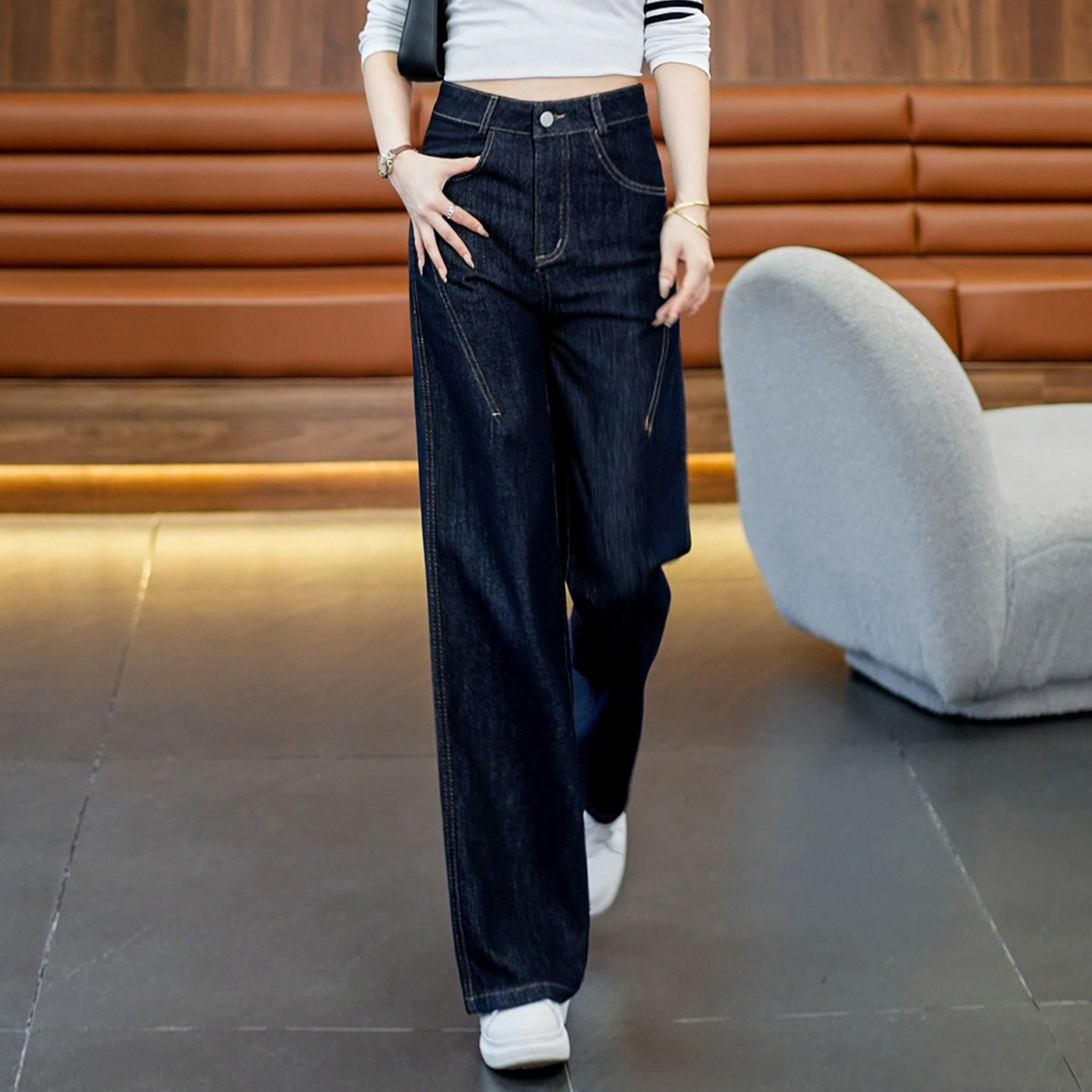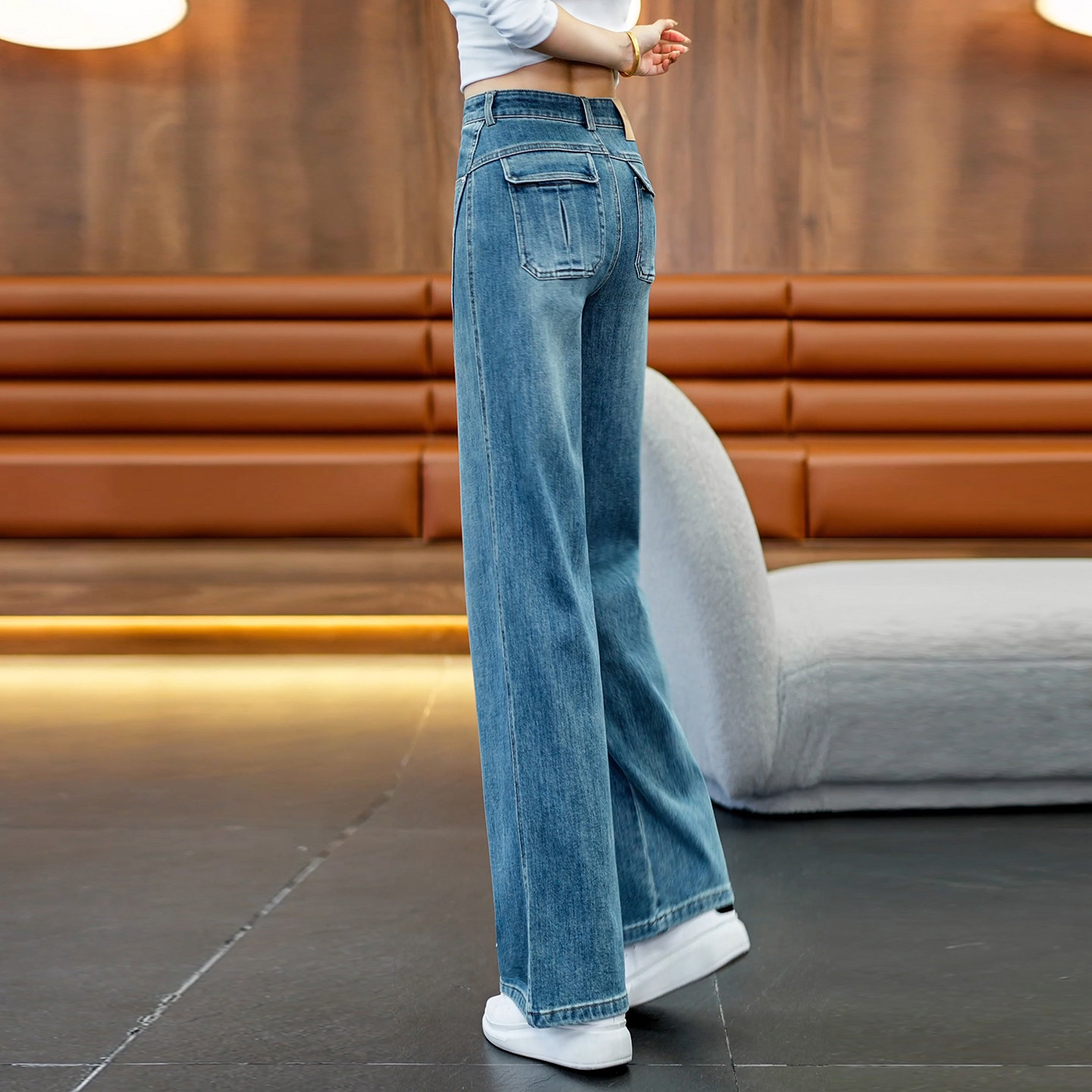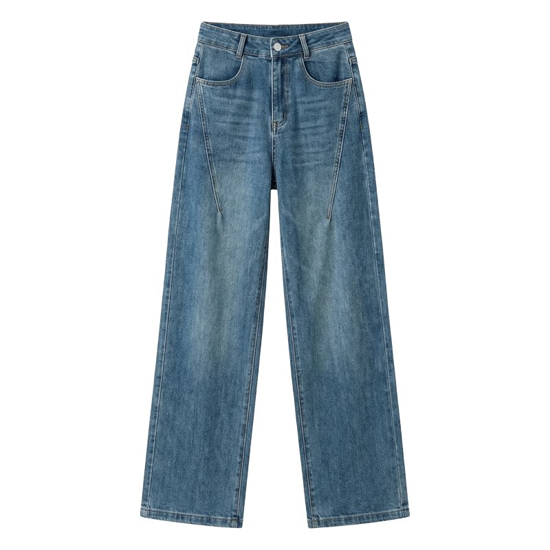 复古阔腿牛仔裤女垂坠感直筒长裤