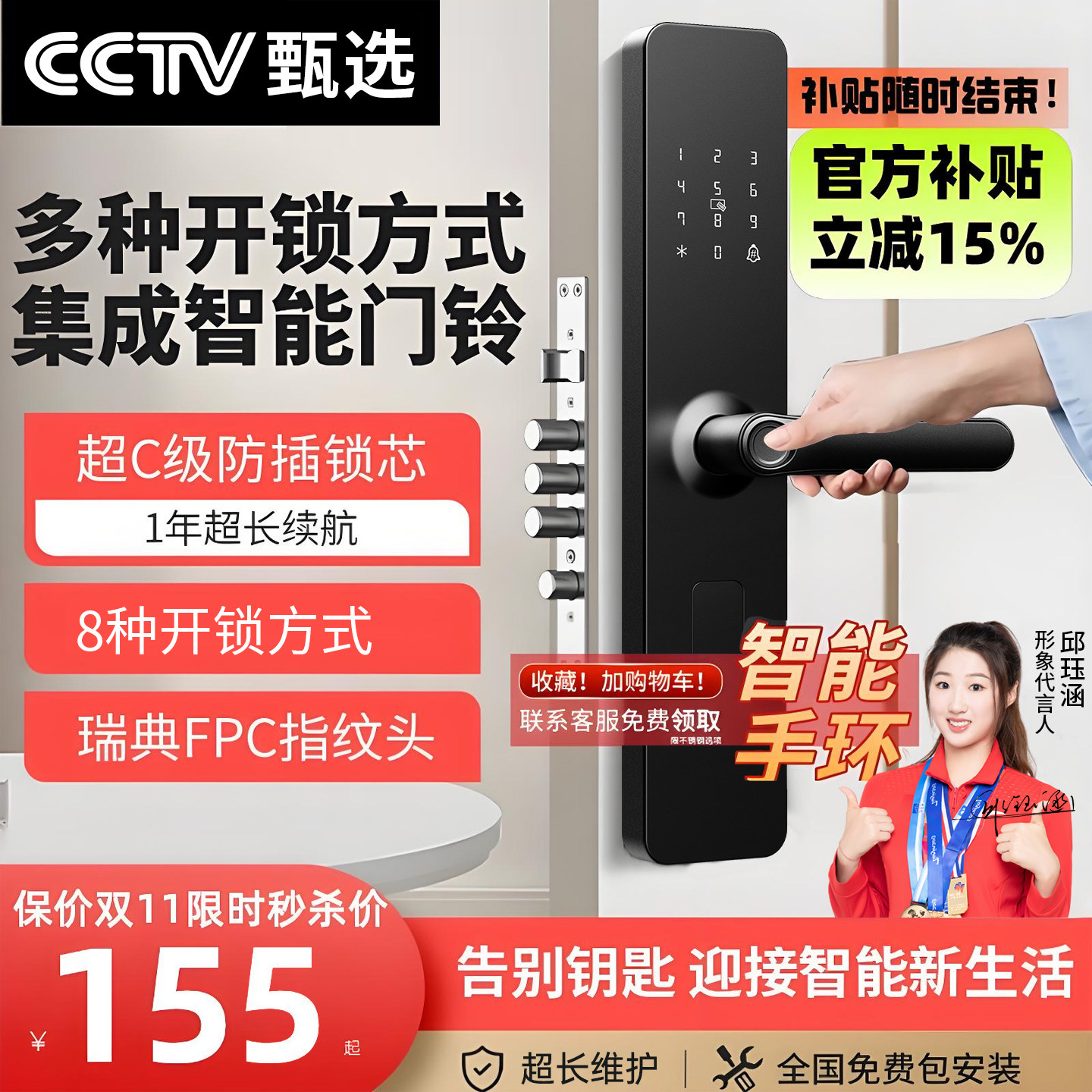 密码锁家用门锁出租房指纹锁半自动木门智能门锁可视带监控电子锁