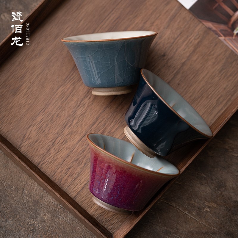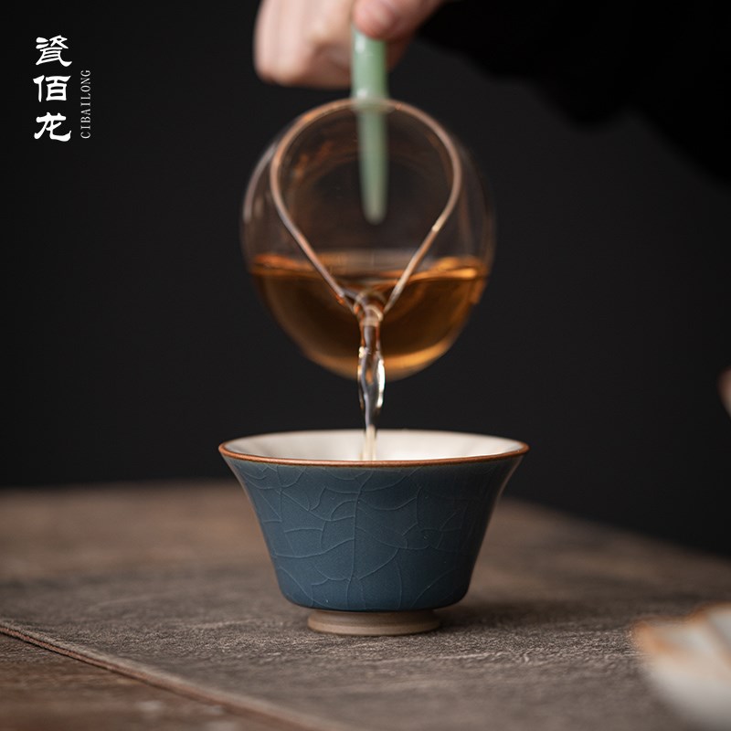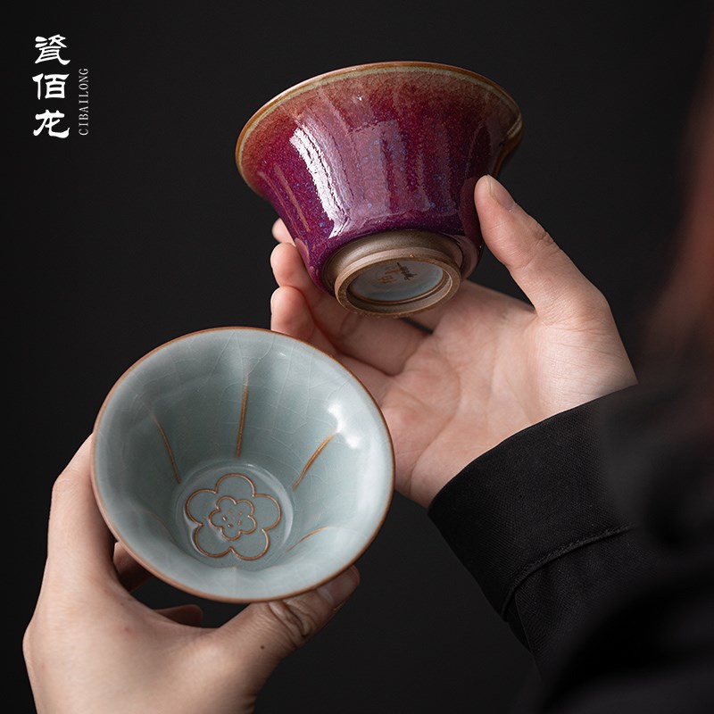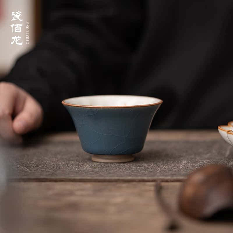 柏韵邱卫国汝窑茶杯主人杯客杯单杯品茗杯陶瓷功夫茶具中式复古风