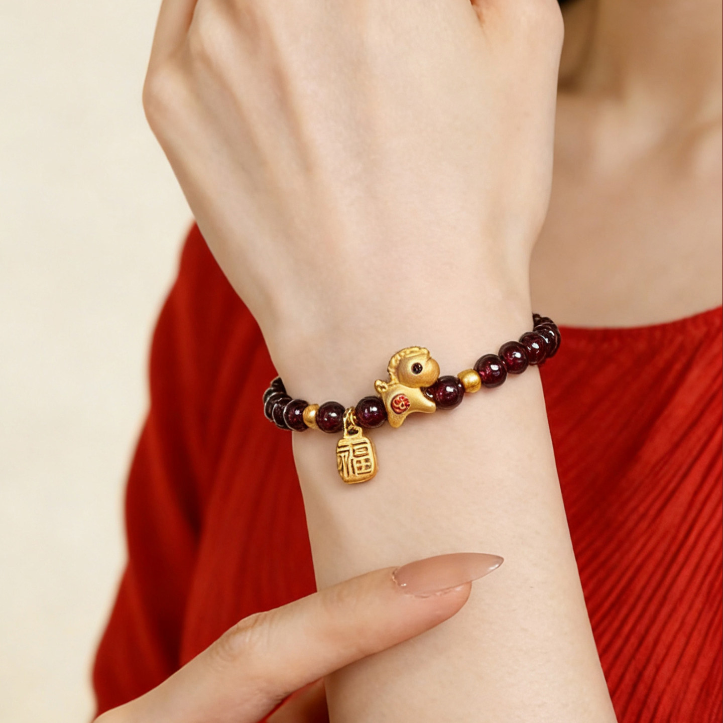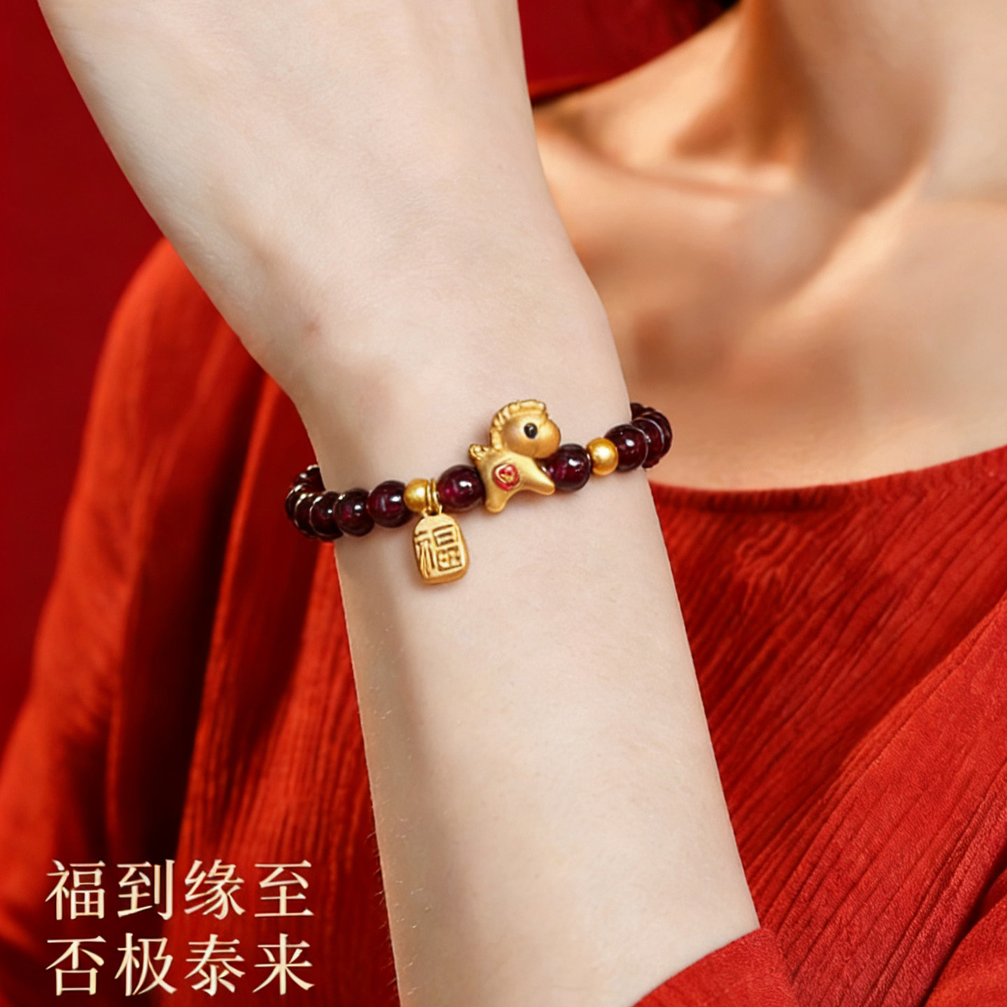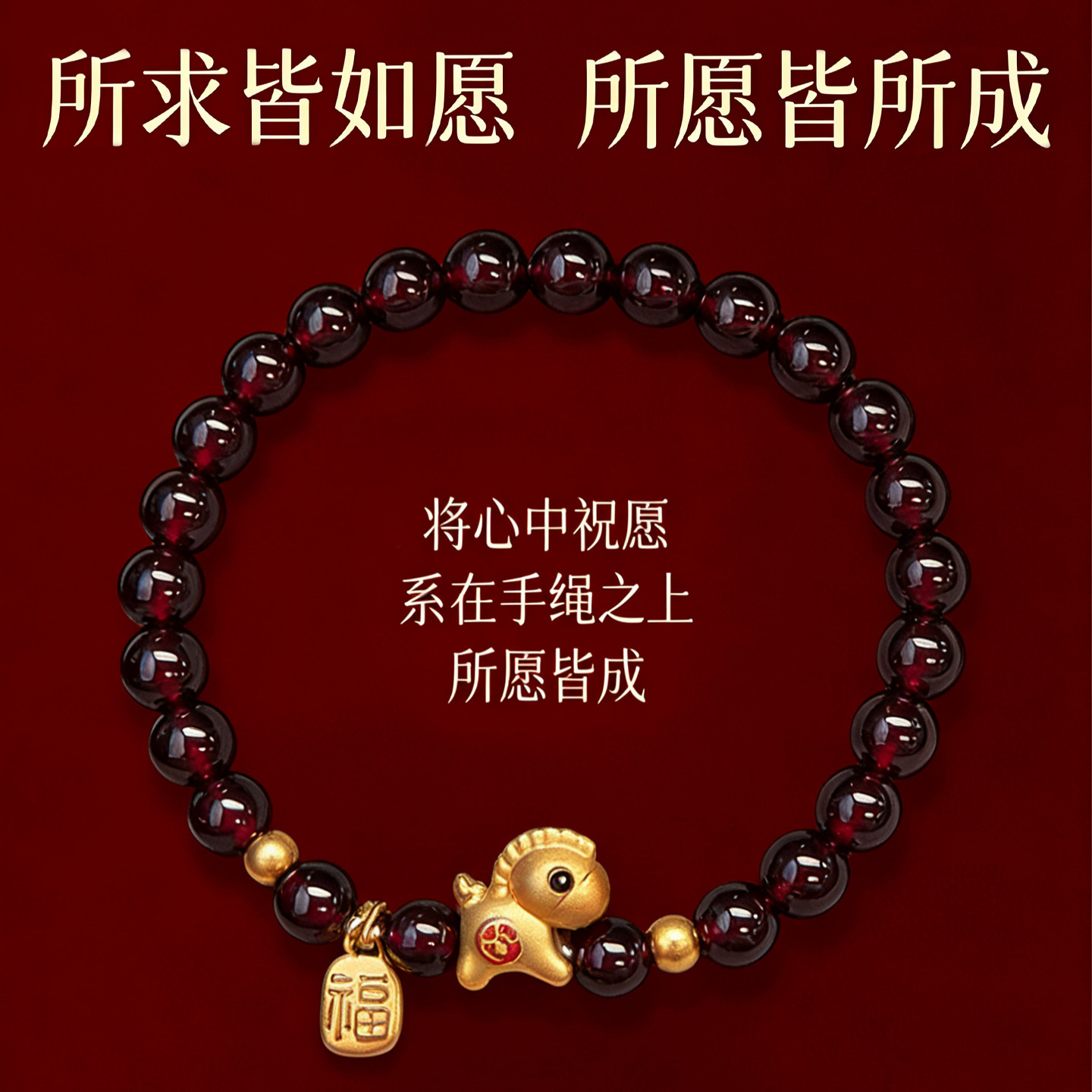 2026马年本命年手链女高级感小马转运招财石榴石红色水晶手串礼物