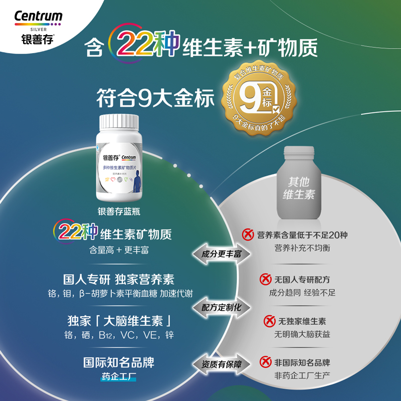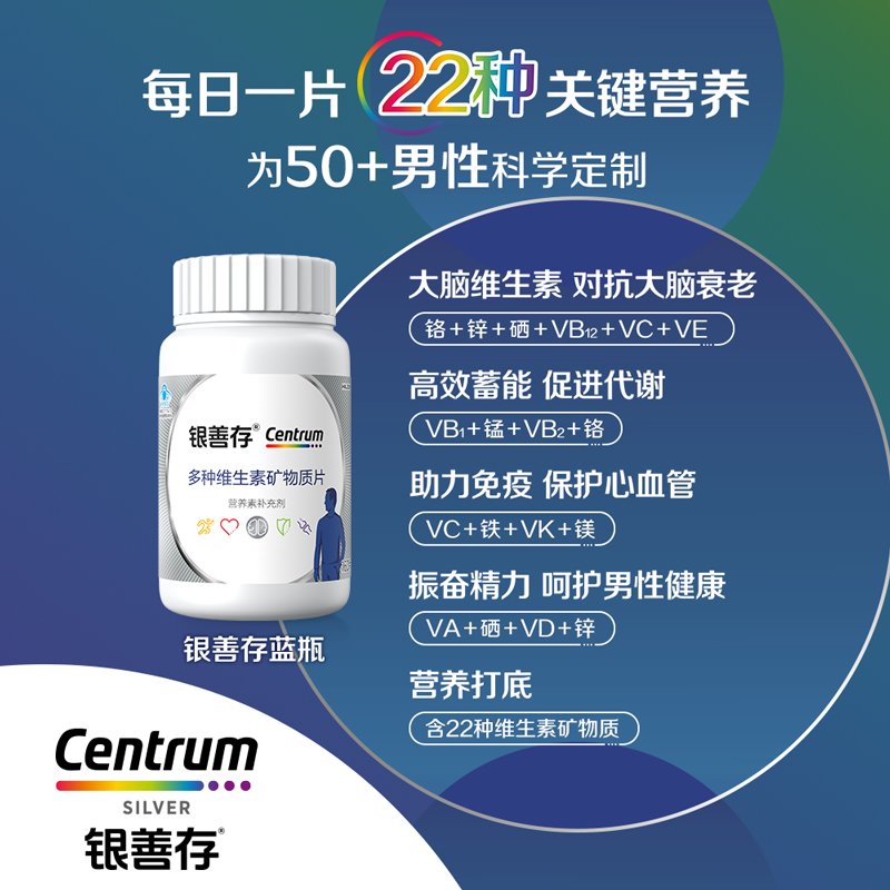 银善存中老年男士多种维生素含维生素22种营养素160片b族维c锌ve