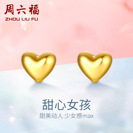 周六福黄金耳饰女爱心耳钉心形耳环计价足金迷你小巧耳钉养耳百搭