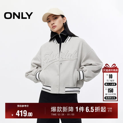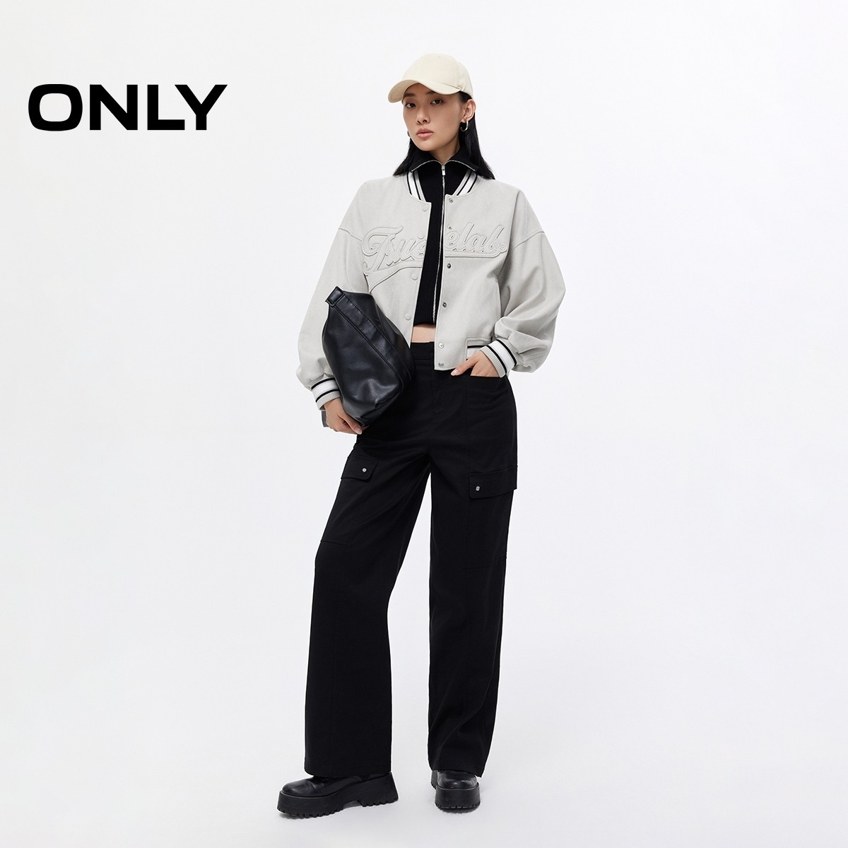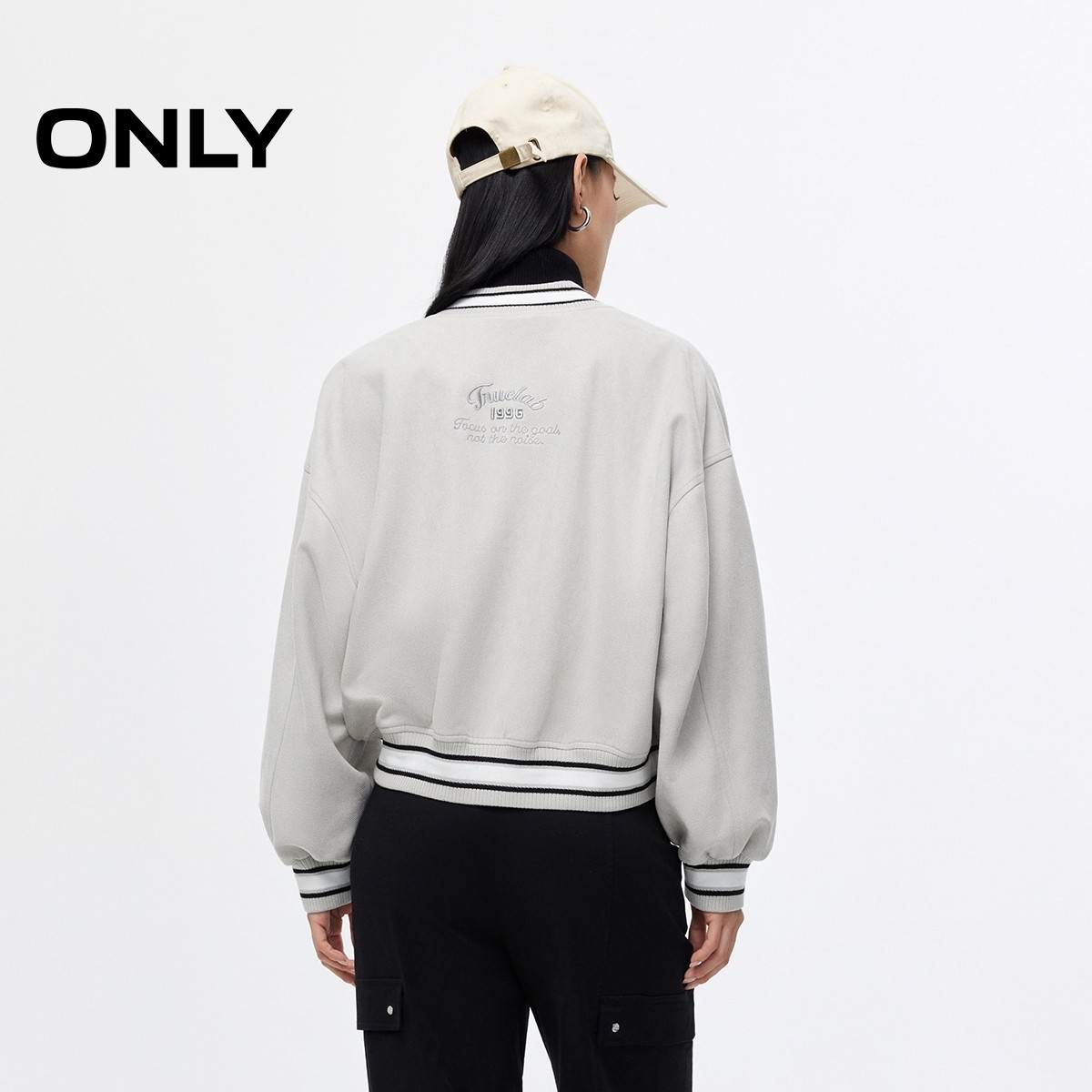 ONLY2025冬季新款美式休闲撞色贴布字母长袖棒球服宽松外套女