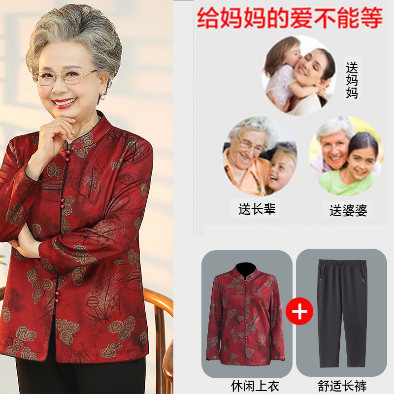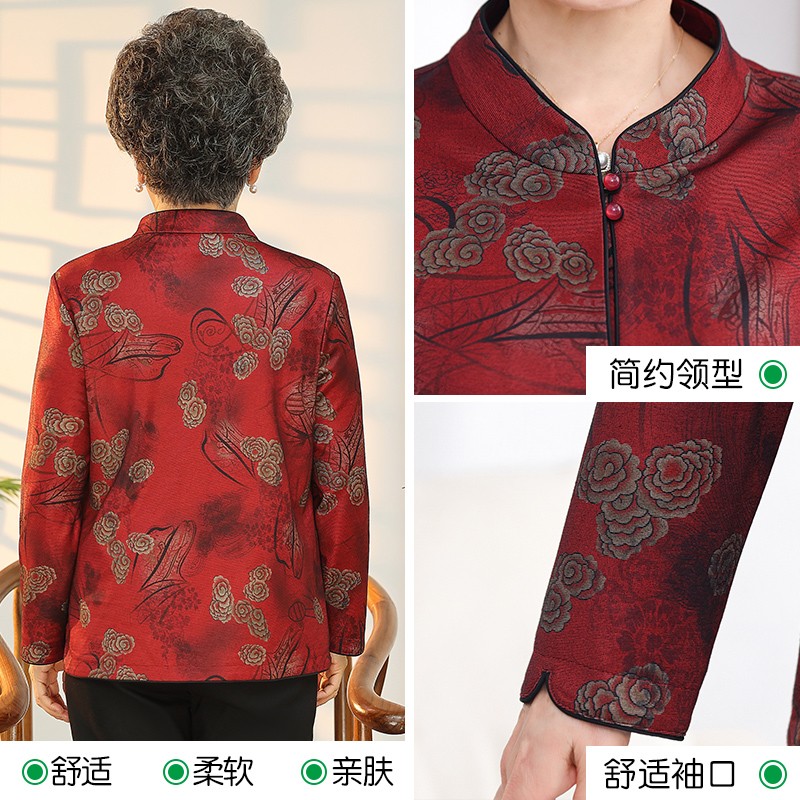 中老年人秋装女奶奶衬衫70岁妈妈春秋长袖老太太唐装衬衣老人衣服