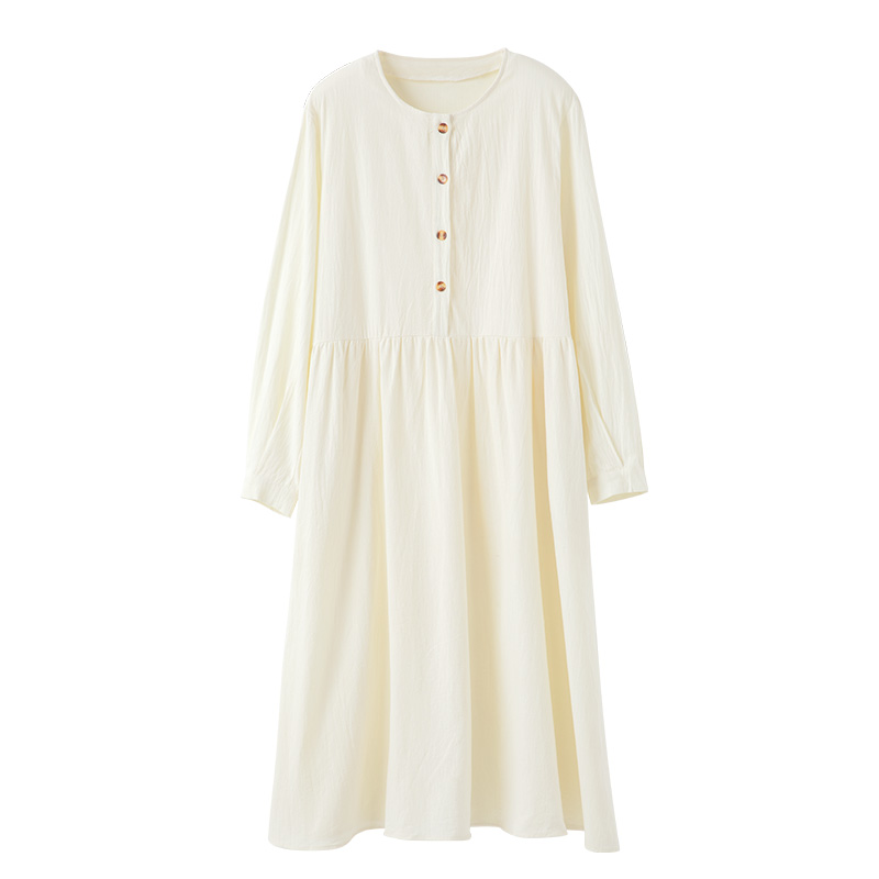 森系垂坠感长袖黑色连衣裙女早秋新款宽松显瘦遮肚大a摆棉麻长裙