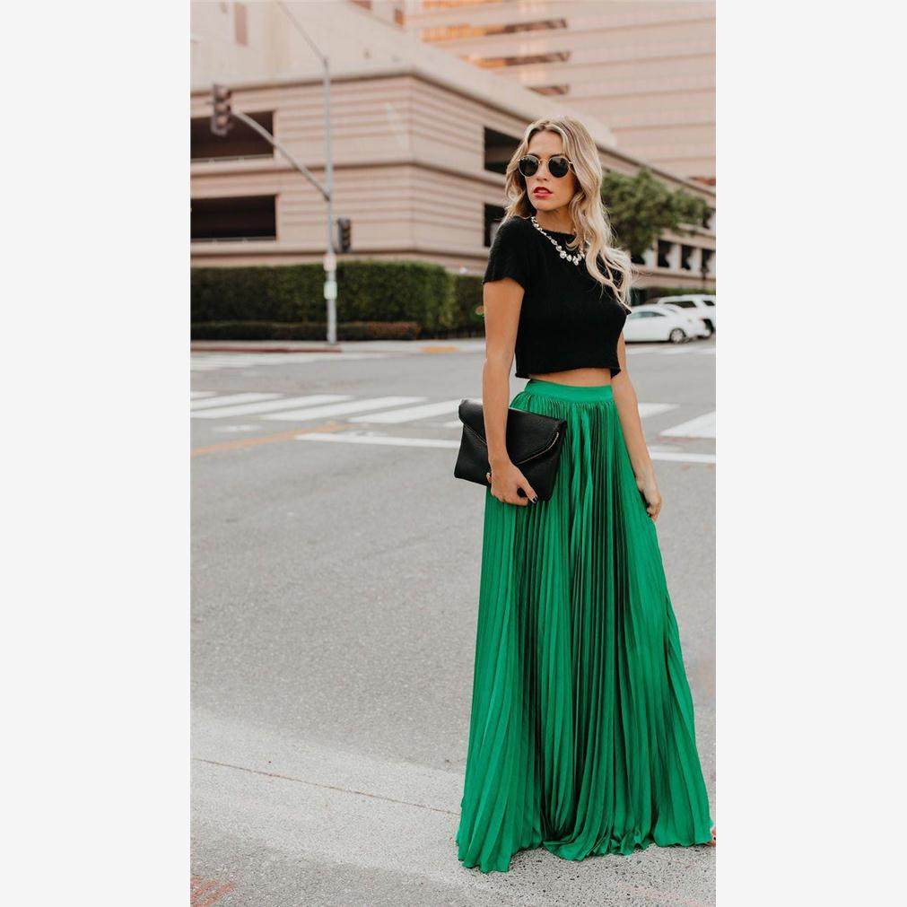 欧洲站波西米亚风时尚粉色百褶度假沙滩大摆半身裙舞蹈长裙S-2XL