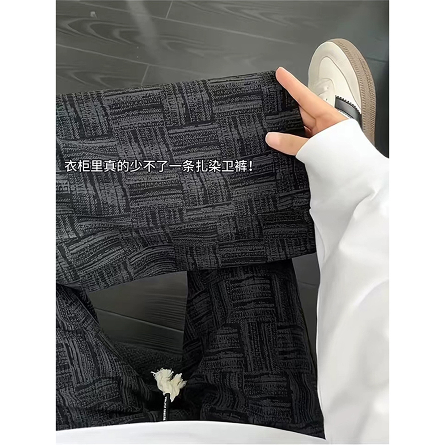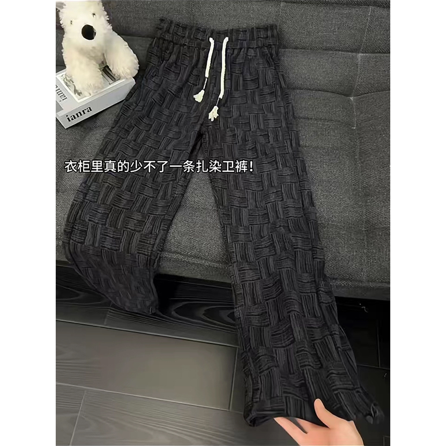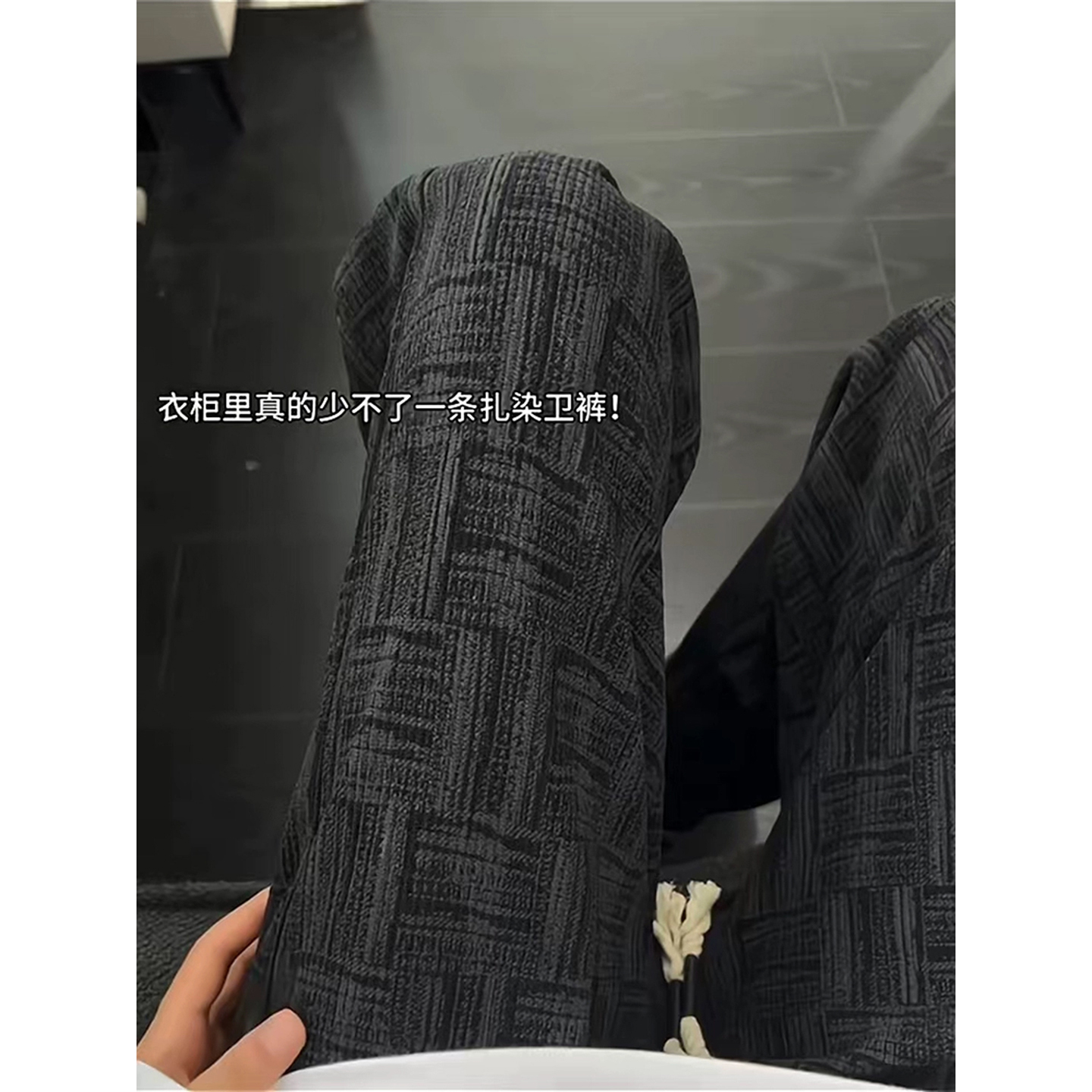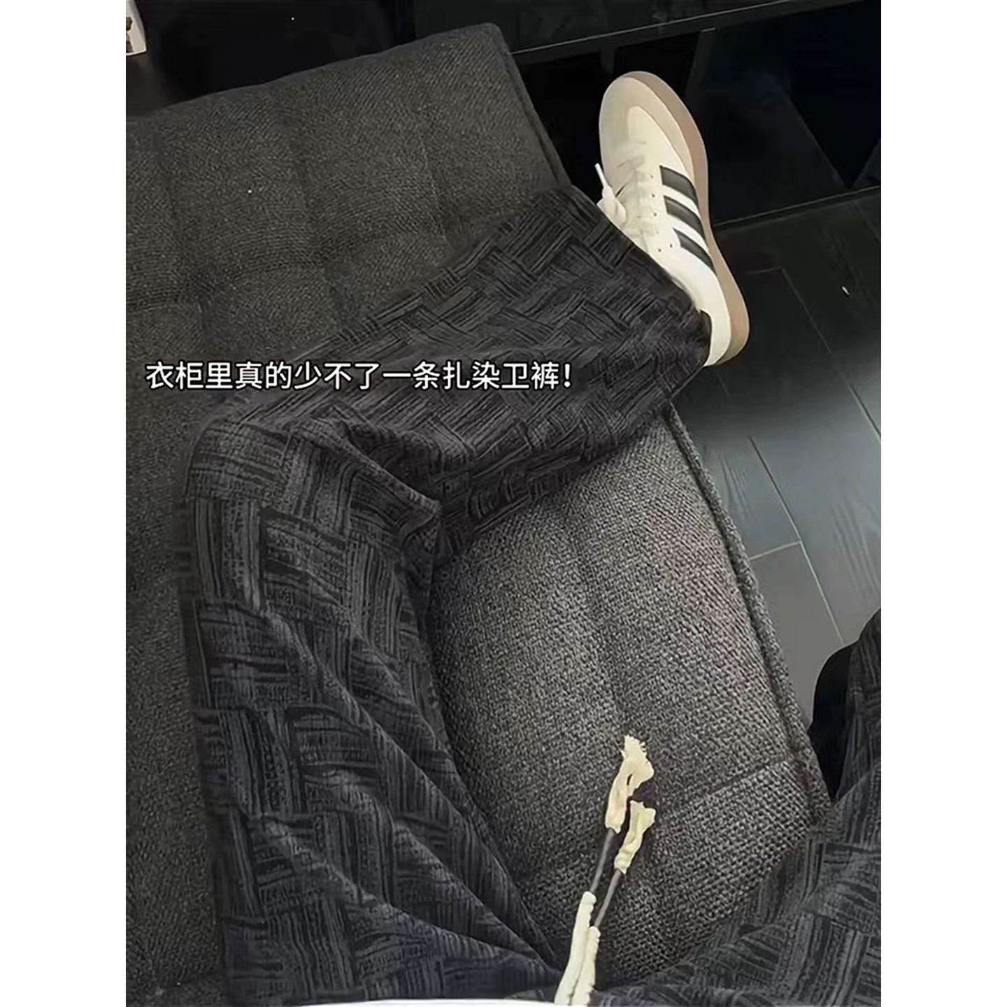 黑色扎染美式卫裤男秋季垂感慵懒松弛感裤子高级感高街编织休闲裤